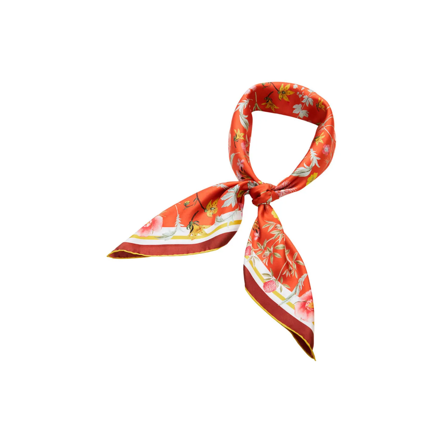 Omfavn naturens skiftende årstider med vores smukke Autumn garden silketørklæde. Med en varm rød-orange baggrundsfarve og en livlig gul håndrullede kant, omfavner dette tørklæde essensen af efterårets skønhed. Fremstillet af 100 % luksuriøs silke twill, dets indviklede design forener elegance og natur problemfrit. Motivet er inspireret af Danmarks utæmmede flora, med varme nuance og delikate Flora Daniva blomstermotiver. Den gule kant tilføjer en smuk og elegant kontrast til den råde baggrund og skaber en flot rammer til motivet.