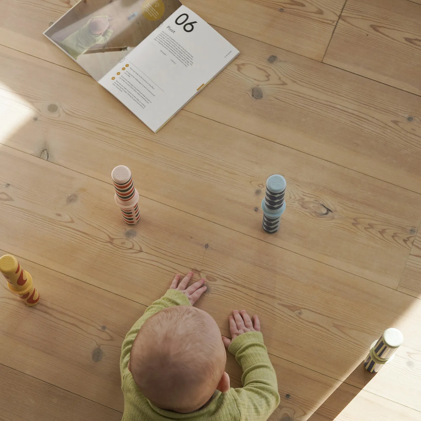 MODU baby motoriksæt — 12 sjove øvelser til de første 12 måneder af livet. Produktet er designet af eksperter i babyudvikling og indeholder en omfattende guide med billeder og vejledninger, der følger din babys vigtige motoriske milepæle; fra mavetid til kravl og videre. I pakken modtager du også specielt designet raslepinde med unikke lyde og mønstre, som giver både visuel og sanselig stimulans. Velkommen til et år fyldt med sjov, leg og udvikling! Alder: 0-12M.