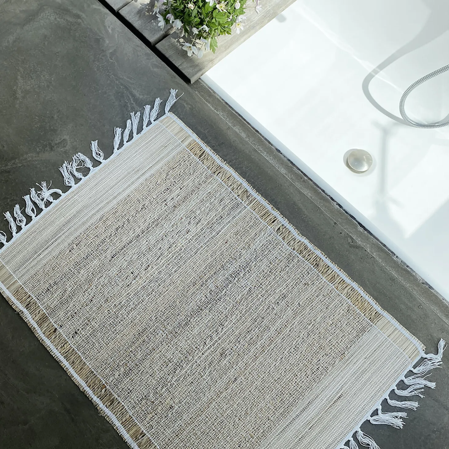 The Balance mat is not just a beautiful, timeless and handmade mat. It is so much more. At CARE BY ME it is our desire to help communities in Nepal and India to a better life, so when we were asked if we would support this social project in the small village close to our partner in India, we obviously had to say yes. As soon as we saw the products, we decided to expand our support by not just donating our organic cotton for their local weaving project, but we decided to do our own designs and include this amazing product into our full year collection. This way we do not only support the village by giving them some free cotton one time – we actually try to make a long term support that will hopefully last for years. We love the idea of combining two natural materials making these wonderful products. Local banana leaves harvested by hand and organic cotton from our own production – woven by hand into these amazing Balance rugs and mats. Each rug and mat are woven on a handloom by a local weaver. We are amazed to see what hands can do and we truly cherish their craftsmanship and valued commitment.The soft yet tough mat measures 50 x 70 cm, making it perfect for the floor of your hallway, kitchen, bedroom, bathroom or your cozy cottage. MaterialBanana leaves and organic cotton from our own productionHand wash onlySizeW:50 cm – L:70 cm Please noteSince the product is entirely handmade; no two are alike, hence there can be slight variation in colors and sizes.