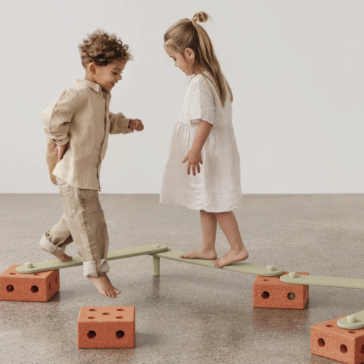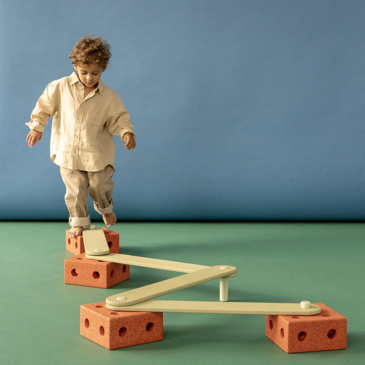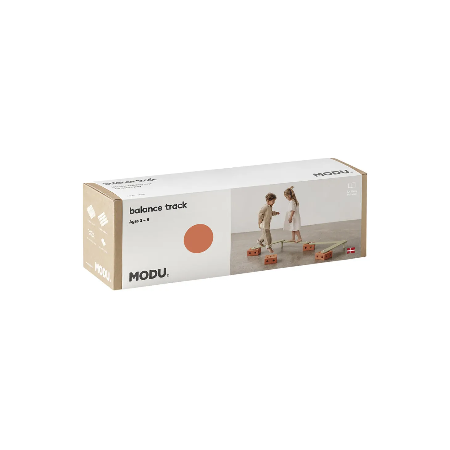 Balancebane- Byg dine egne balancebaner- Træn balance og byg smarte møbler- En del af MODU-systemetByg. Balancér. Med dette sæt af bomme og klodser kan børn designe deres egne balancebaner og udfordre deres koordination og motorik med mindst 10 forskellige baner på forskellige niveauer — og flere at udforske! Balancebommene er lavet af FSC-certificeret birketræ og bejdset med naturlige linolier, hvilket giver et bæredygtigt og holdbart design, der passer ind i ethvert hjem. Med utallige måder at bygge på er dette sæt perfekt til at fremme fantasifuld leg og aktiv læring, og når balancebanen ikke er i brug, kan den bygges om til smarte møbler, som en hylde, en bænk eller endda et lille bord — et sjovt og funktionelt legetøj til børn fra 3 år og op!Antal dele: 17 stk (4x balancebomme, 4x klodser, 8x pinde, 1x inspirationshæfte)Byggemuligheder: Mere end 10 mulighederAlder: 3 – 8 årVægtgrænse: Maks. 80 kgMål: 70 x 24 x 20 cmPleje: Rengør med fugtig kludMaterialer: 100 % genanvendeligt EPP-skum og ABS. Balancebomme i FSC-certificeret birketræ.Produktion: Produceret i Lyon, Frankrig og Odense, Danmark