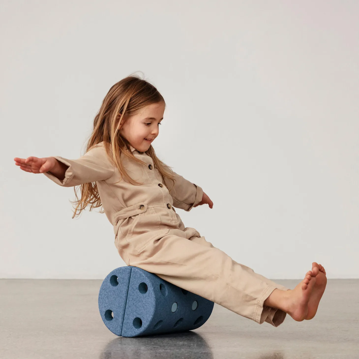 MODUs balancerulle er en fin lille 3-i-1. Brug rullen til at rulle hen over og øv din balance. Den kan også sammensættes på langs og det fungerer perfekt som en balancebane som en del af en længere forhindringsbane eller “jorden er giftig”. Når legen er slut, så er rullen god at sidde på og kan bygges som en fin skammel – eller et lille natbord? Balancerulle i EPP-skum og ABS-plast fra MODU.