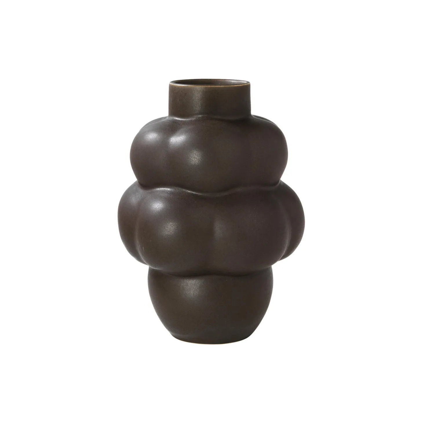 Vasen er oprindeligt en hyldest til håndværket af mundblæst glas. Med dens sanselige runde former, bringer den keramiske tekstur et helt nyt liv til designet. Inspireret af jorden og himlen, findes der tre farver: mud brown, raw white og sanded grey keramisk glasur. OBS: Dette er et håndlavet produkt. Det betyder at skævheder og uligheder i form og farve kan forekomme. Det synes Louise Roe er charmen ved et håndlavet produkt.