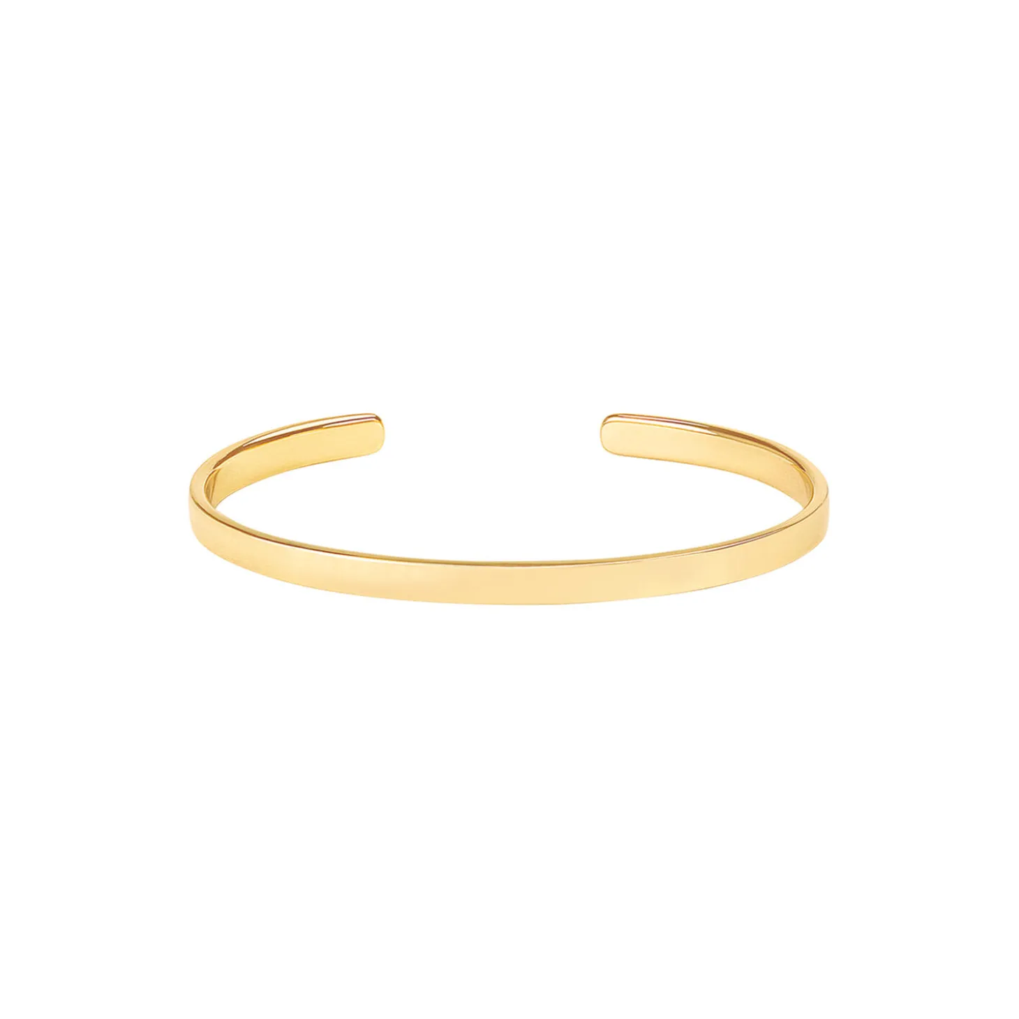 Open and adjustable bangle in gilded brass. This bangle is adjustable by applying gentle pressure.