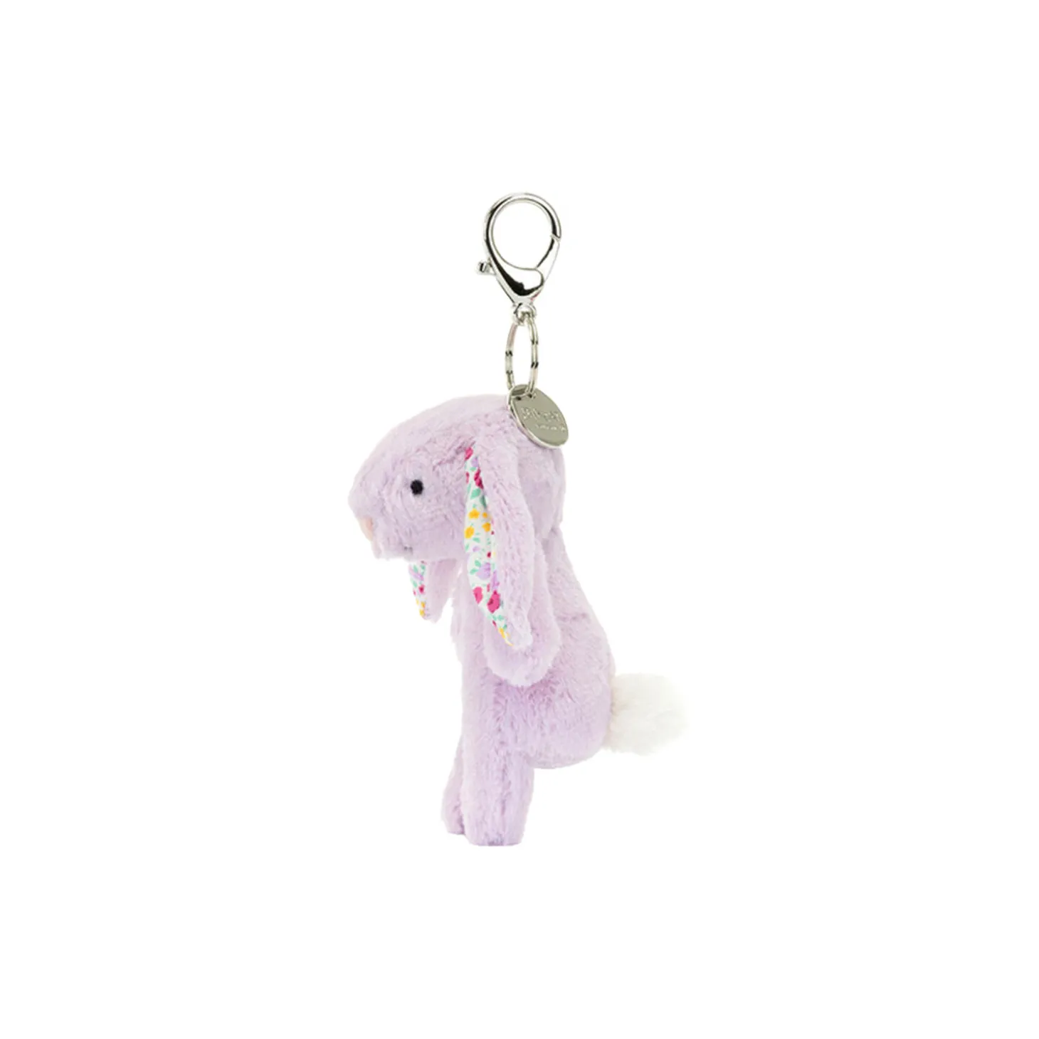 Sød kanin som vedhæng i nøglering fra Jellycat, til tasken, tøjet eller sammen med nøglerne. Kaninen er fremstillet i de blødeste materialer og er med blomstret stof i ørene