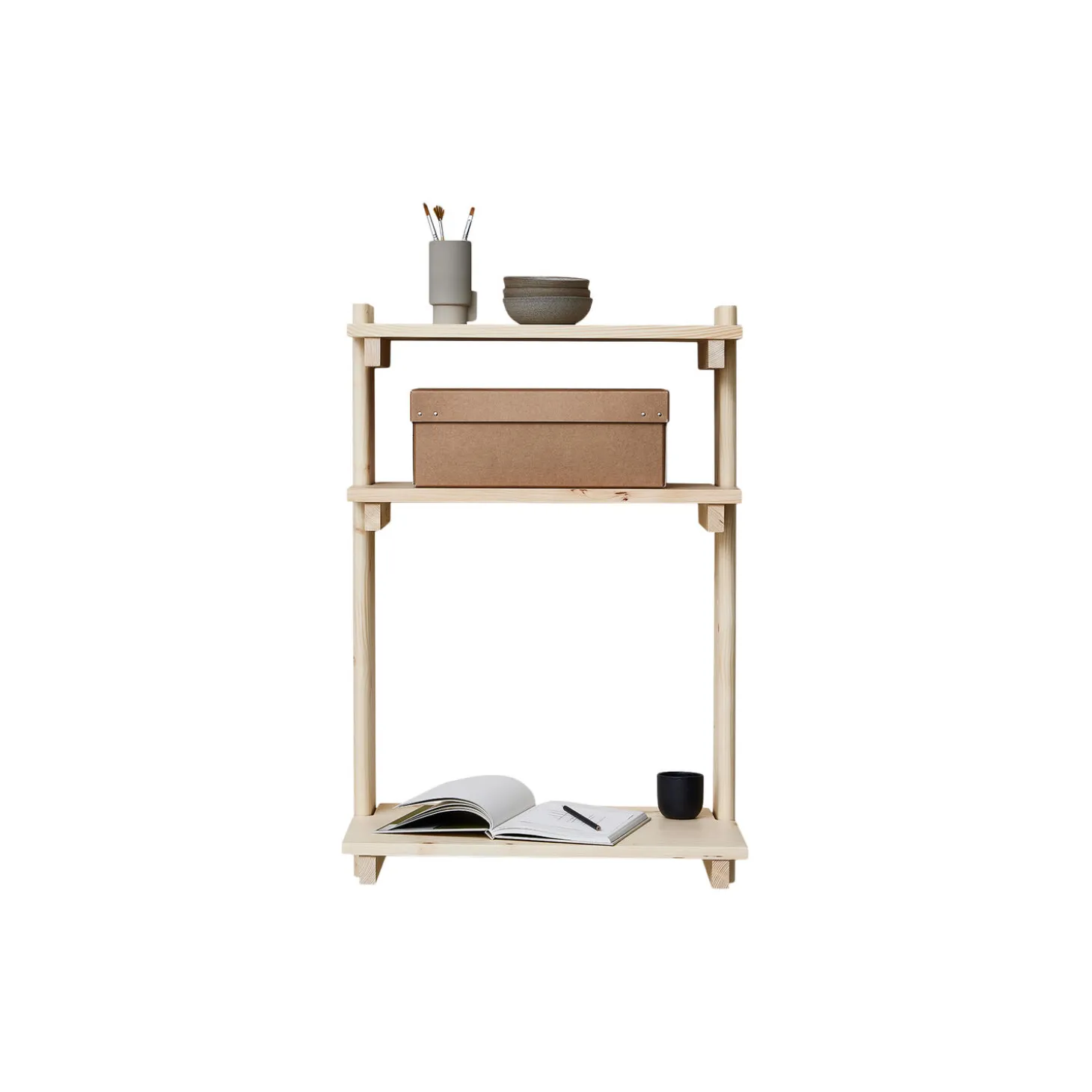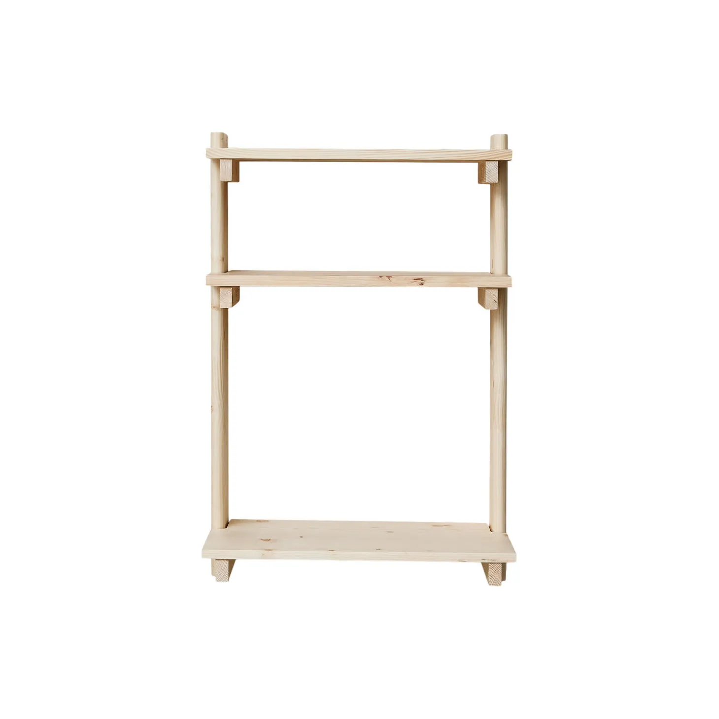En holdbar og praktisk væghængt reol med en god dybde til nem opbevaring eller udstilling af dine yndlingsgenstande. Den nederste hylde kan bruges som et lille skrivebord på hjemmekontoret, hvis pladsen er begrænset. De karakteristiske H-formede ender, som fremhæver fyrretræets smukke årer, omfavner hylderne, der ligesom resten af møblet er fremstillet af massivt fyrretræ. Den smukke reol er fremstillet af hvidbarket fyrretræ, et materiale med et varmt udseende, som er et godt alternativ til traditionelt langsomtvoksende træ og dermed et mere ansvarligt valg. Overfladen er beskyttet med ultra-mat lak.