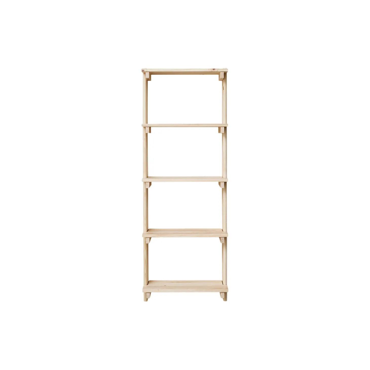 En holdbar og praktisk væghængt reol med en god dybde til nem opbevaring eller fremvisning af yndlingsobjekter. De markante H-formede gavle, som fremhæver fyrretræets smukke åretegning, favner hylderne, der, ligesom resten af møblet, er fremstillet af massivt fyrretræ. Reolen er fremstillet af hvidbarket fyr, et materiale med et varmt udtryk, der er et godt alternativ til traditionelt langsomtvoksende træ og dermed et mere ansvarligt valg. Overfladen er beskyttet med ultramat lak.