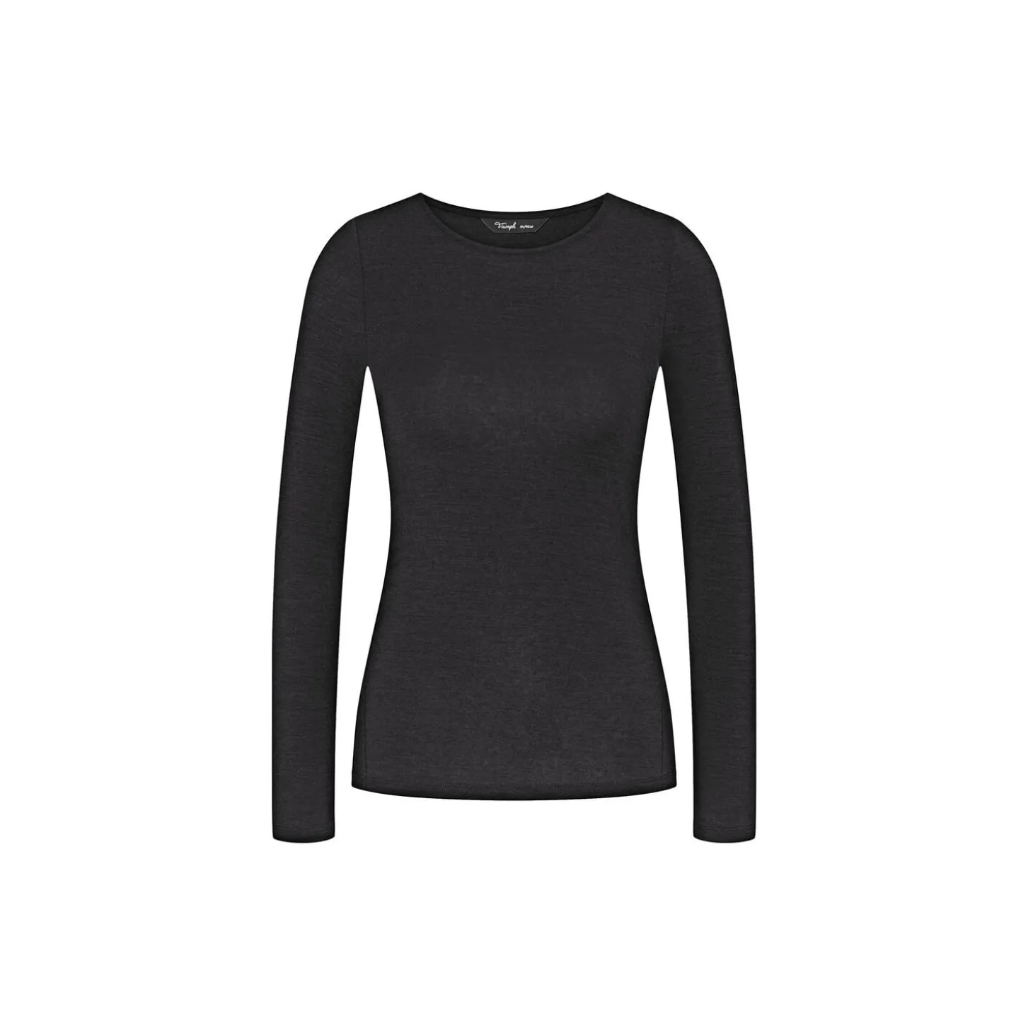 Denne langærmede top med rund hals er et alsidigt stykke tøj, der er perfekt til at bære alene eller som lag på lag. Den er primært fremstillet af blød uld og modal og er let, strækbar, varm og behagelig på huden – perfekt til forskellige lejligheder.