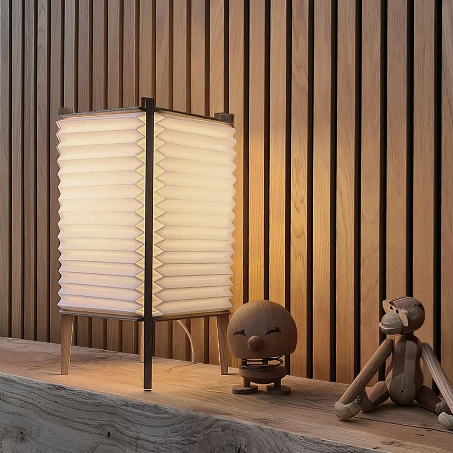 - Materiale: olieret eg og skærm i håndfoldet papir