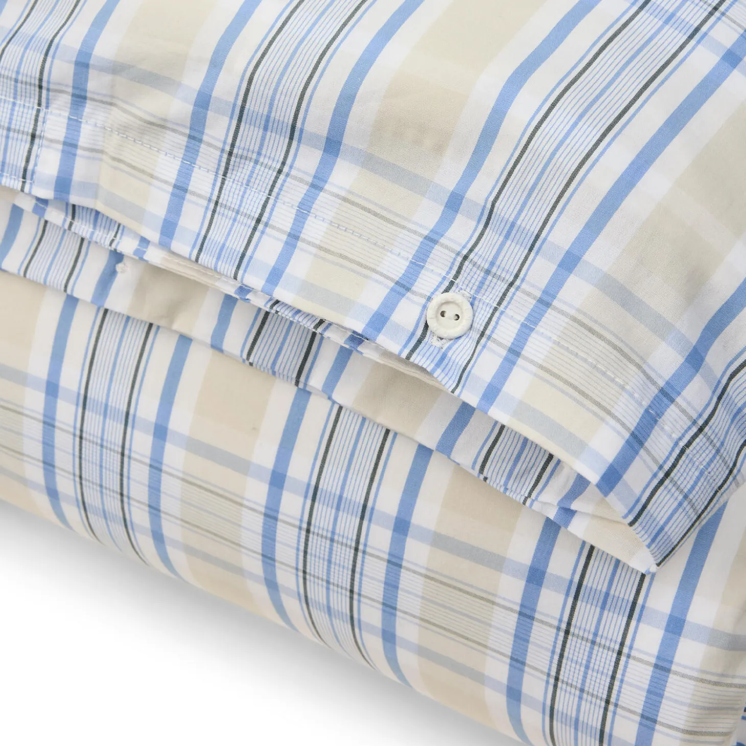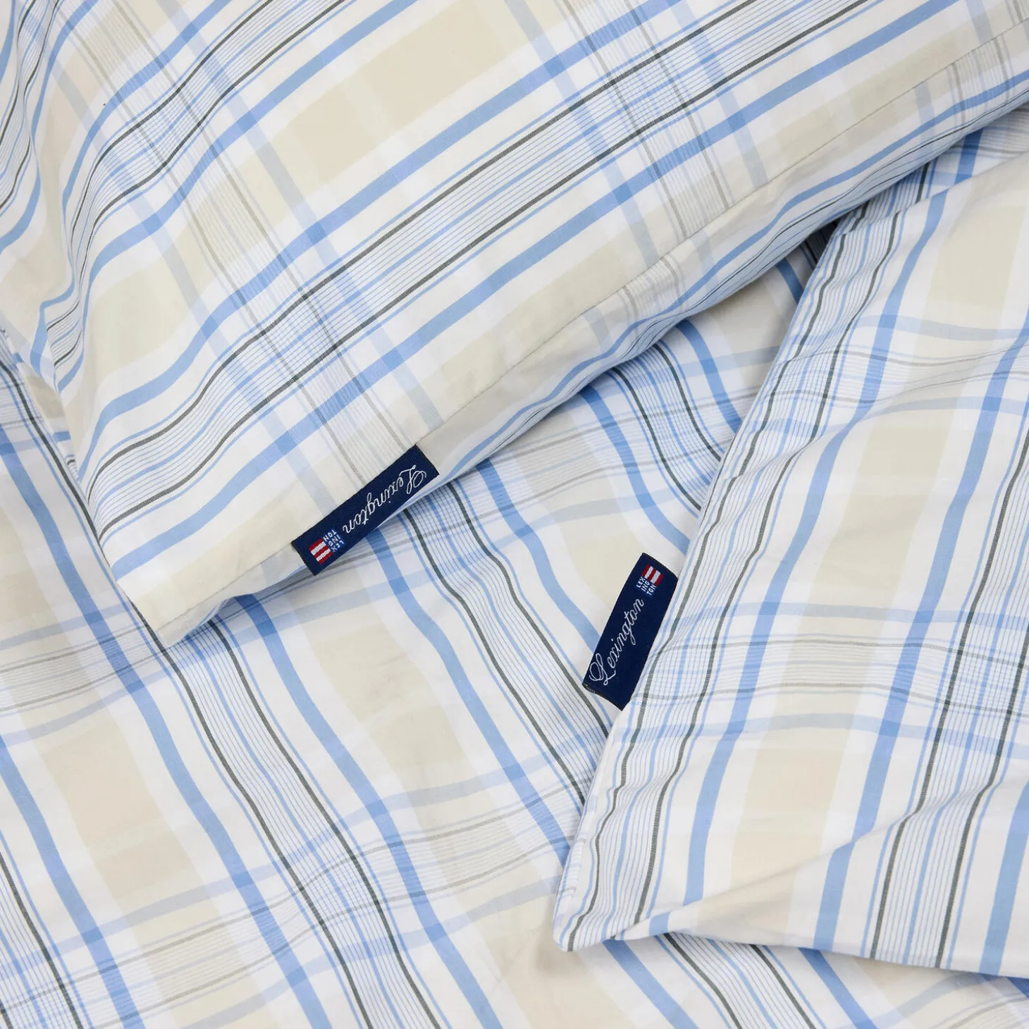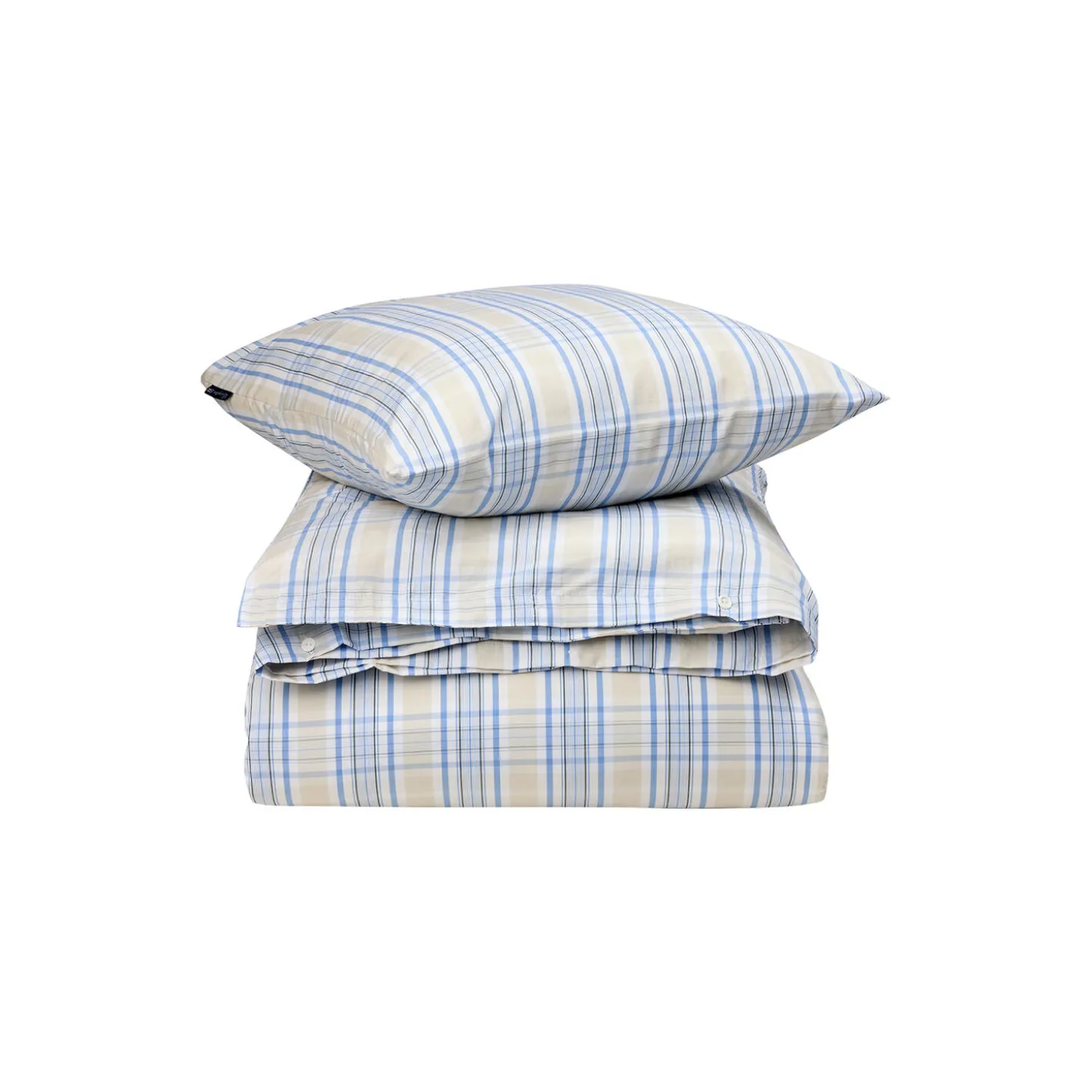 Opfrisk dit soveværelse med vores sengetøj i beige- og blåternet bomuldspoplin. Dette sæt er lavet af blød, kølig og absorberende poplin og kan prale af et højt trådantal for en sprød, ren fornemmelse. Sættet er en del af vores Spring collection og er Oeko-tex-certificeret, hvilket sikrer høj kvalitet og miljøvenlighed. Dynebetrækket har gummiknapper med Lexington-logo, og pudebetrækket har kuvertlukning. Sæt det sammen med det matchende pudebetræk for et koordineret look.