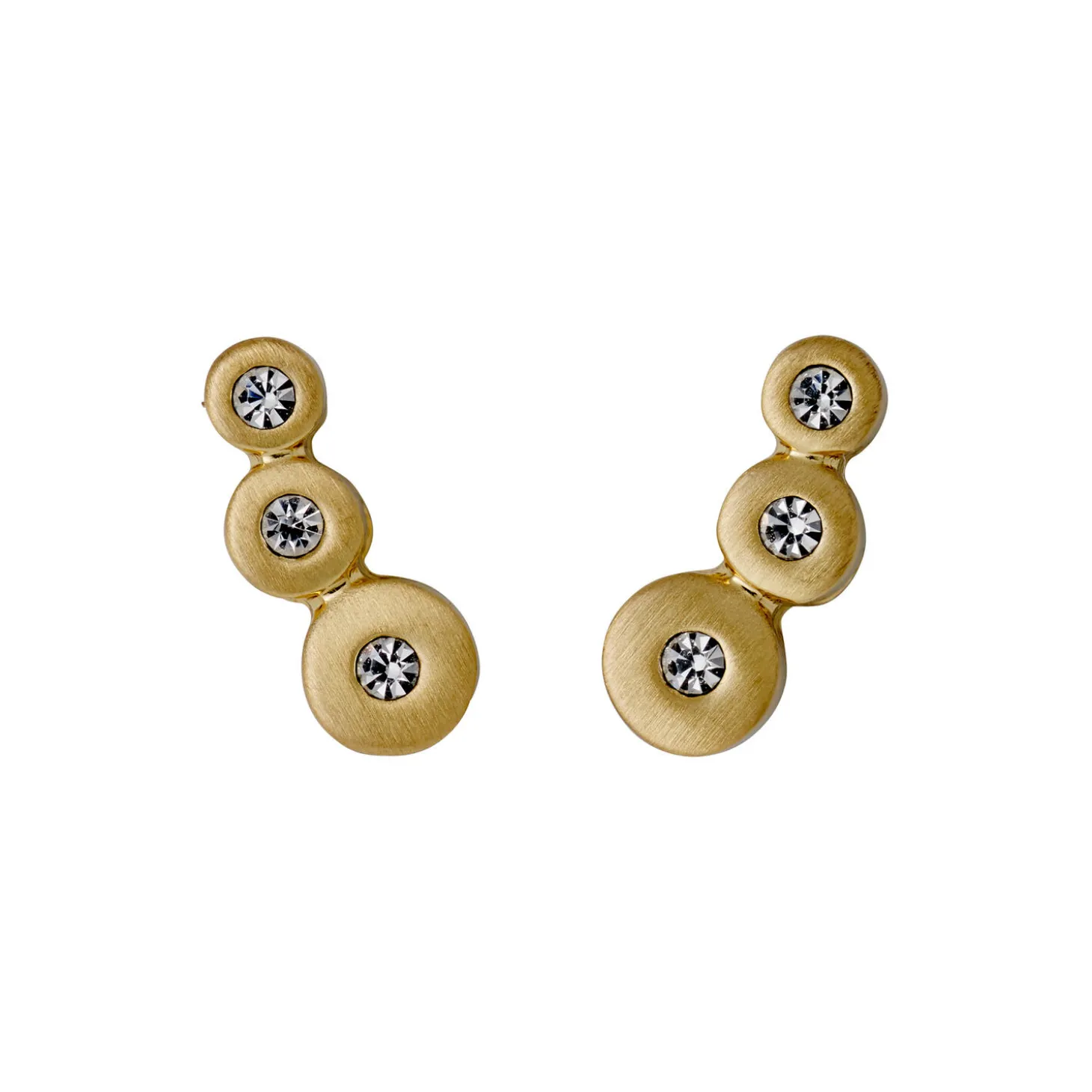 Bella øreringe i guldbelagt stål med krystaller fra Pilgrim. Farve: guld. Mål: H: 13 x L: 10 x B: 4 mm. Antal: 2 stk.
