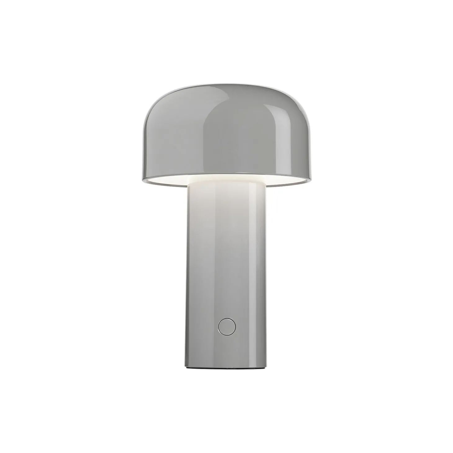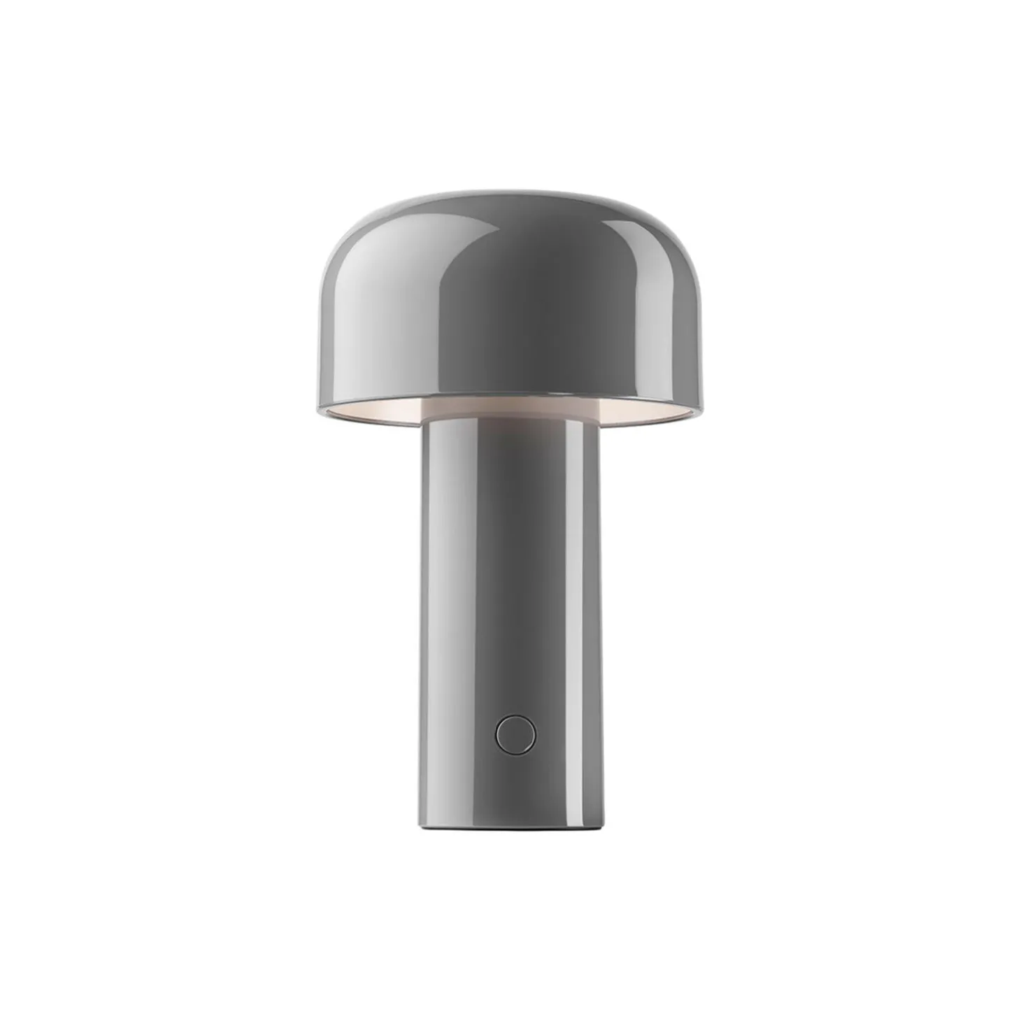 Bellhop bordlampe i polykarbonat med indbygget LED og 4-trins lysdæmpning fra Flos. Farve: grå. Mål: H: 21 x Ø 12,5 cm. Lyskilde: Maks. 2,5W. Oplades via medfølgende USB-stik. Design: Edward Barber & Jay Osgerby.