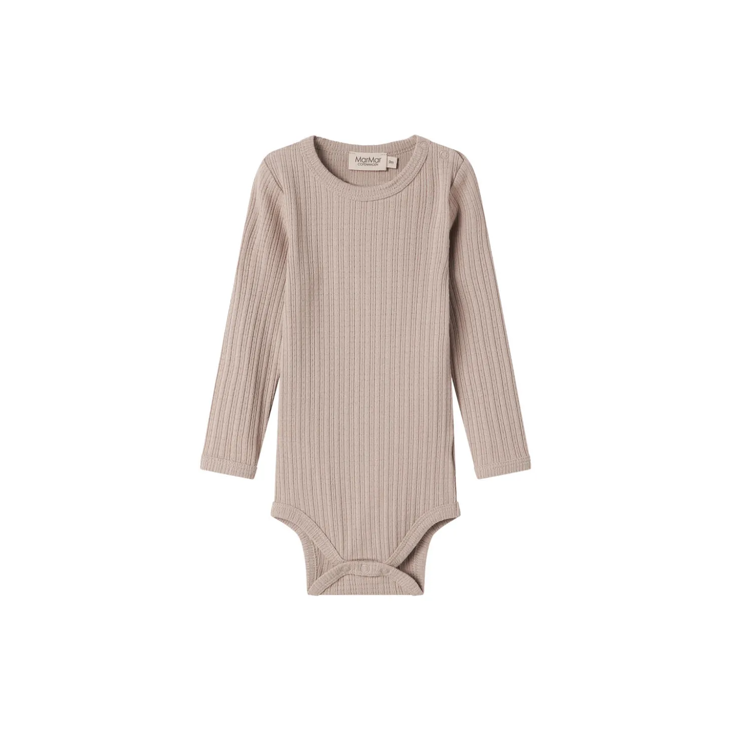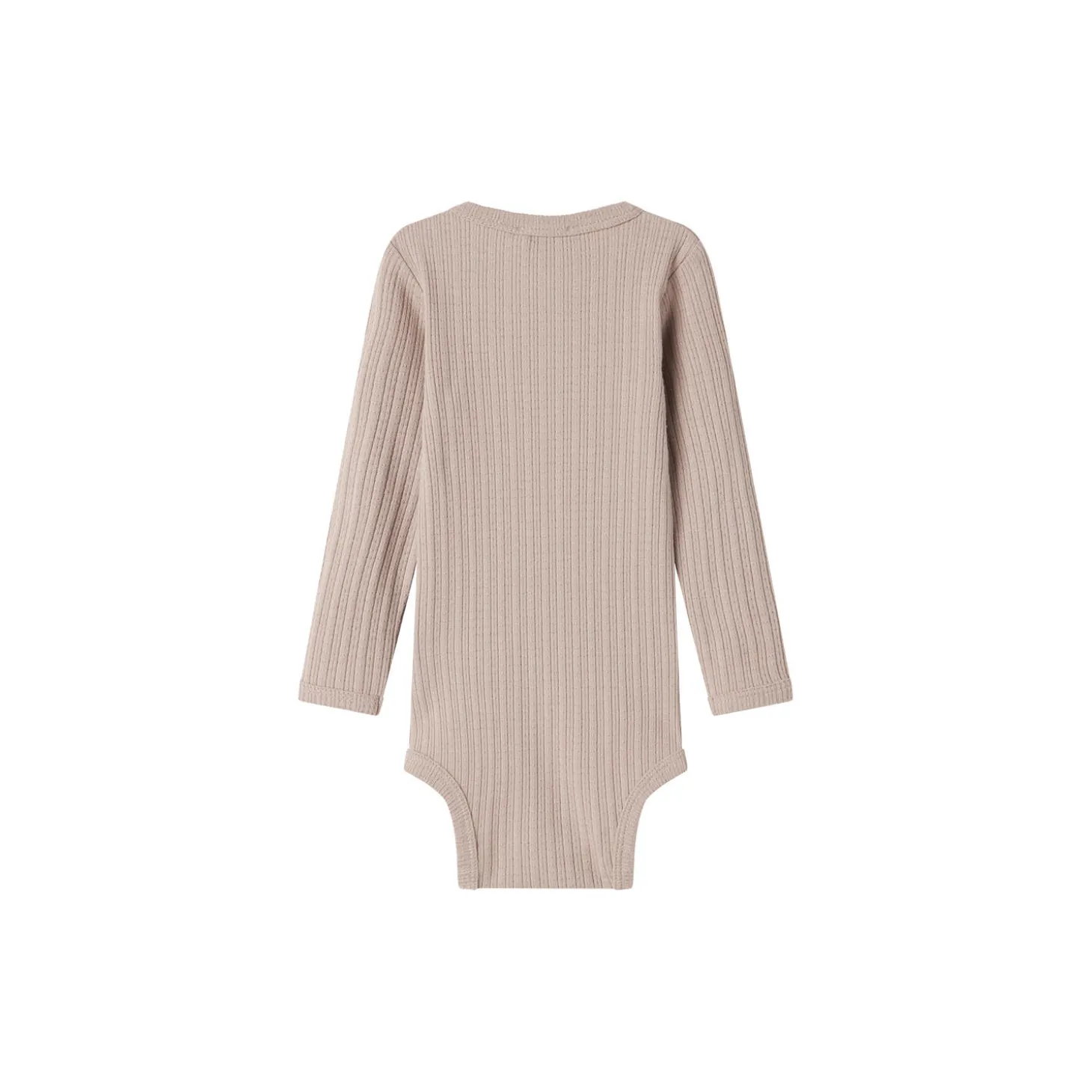 Enkel langærmet bodystocking, der bliver lukket med trykknapper på venstre skulder samt mellem benene for nem bleskiftning.