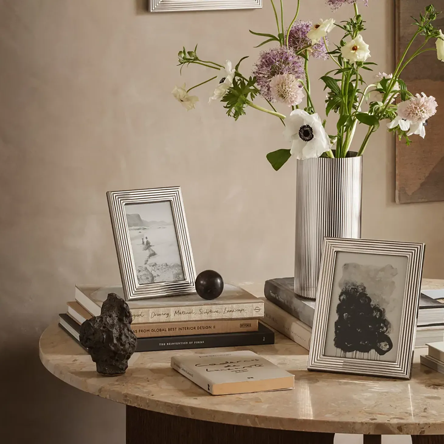 Det ikoniske, riflede design, som kendetegner Bernadotte kollektionen, får denne flotte billedramme til at skille sig ud. Rammen er fremstillet i rustfrit stål og glas, og med sit elegante, sofistikerede design er den ideel til mindeværdige billeder. Et nyt magnetisk system samler rammen, og den kan både stå lodret og vandret eller nemt monteres på væggen.