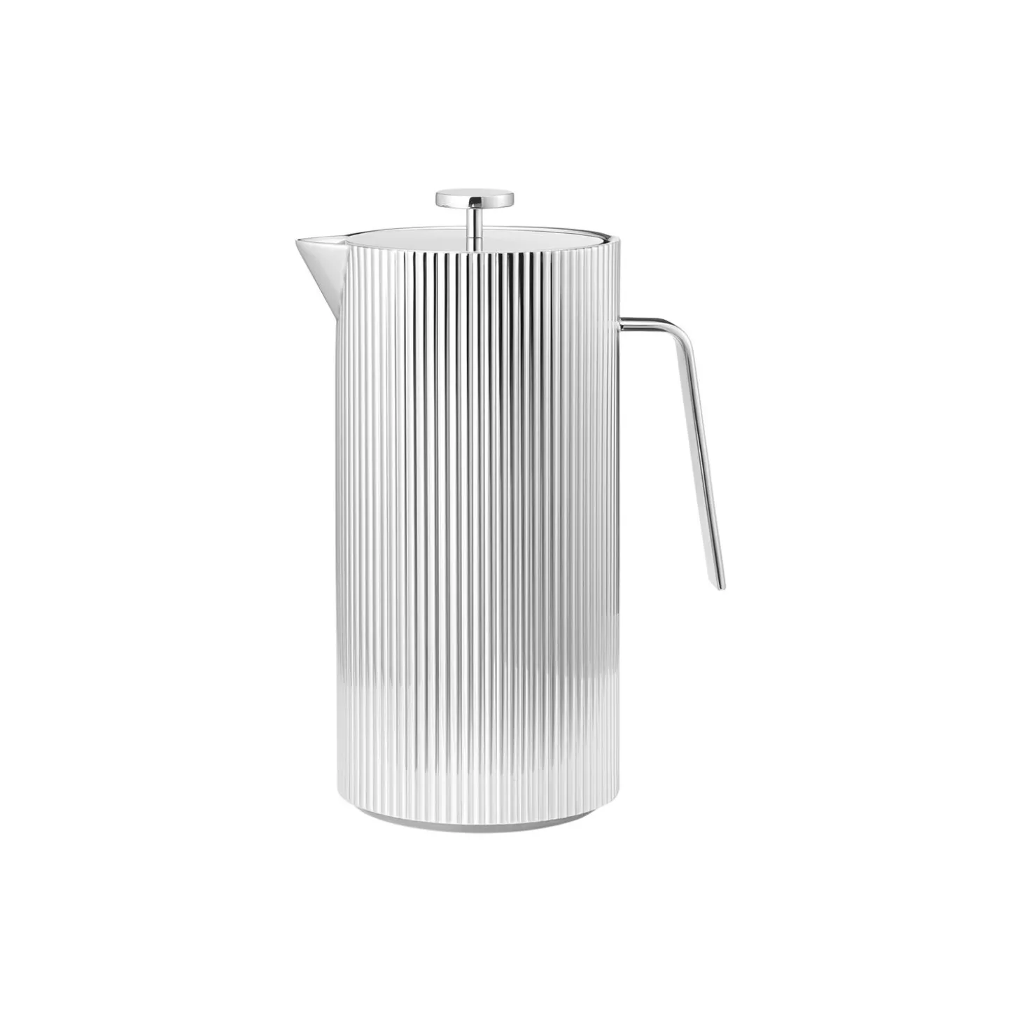 Den karakteristiske og elegante rillede overflade på Bernadotte-kollektionens franske stempelkande giver bordet et umiskendeligt strejf af art deco. Stempelkanden er smukt udført i blankpoleret rustfrit stål og er dobbeltvægget for at holde kaffen varm lidt længere. Filteret af rustfrit stål er desuden nemt at rengøre.