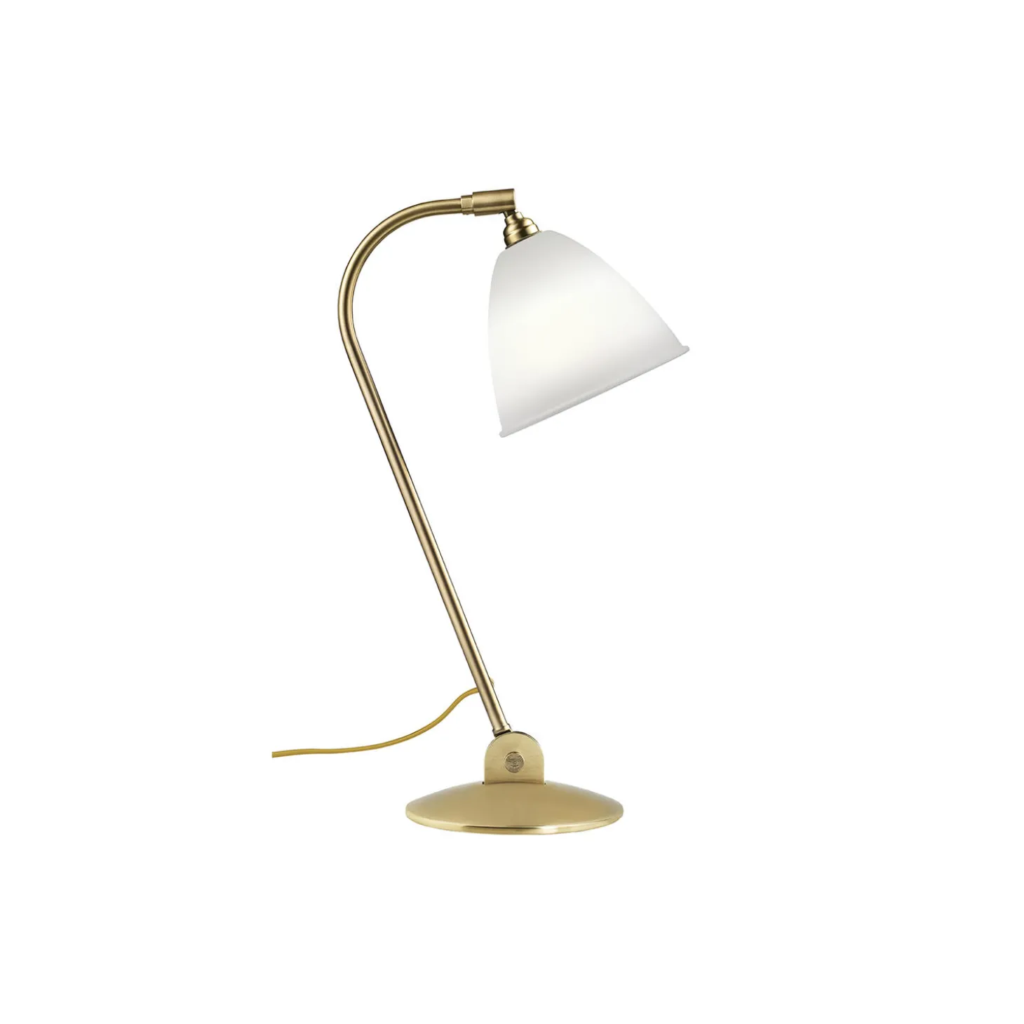 Bestlite BL2 Table Lamp med skærm i benporcelæn samt base og arm i messing fra GUBI. Farve: bone china/brass. Mål: H: 48 x Ø 17,5 x Ø 16 cm. Lyskilde: 4-6W LED E14. Design: Robert Dudley Best.