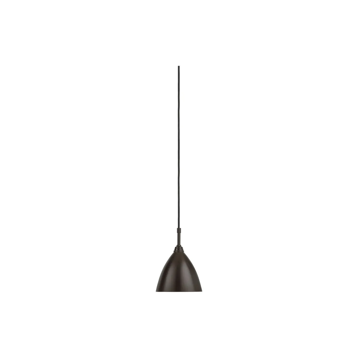 Bestlite BL9 Pendant med skærm og baldakin i bruneret messing samt ledning i stof fra GUBI. Farve: black brass. Mål: H: 34 x Ø 16 cm. Lyskilde: 4-6W LED E14. Design: Robert Dudley Best.
