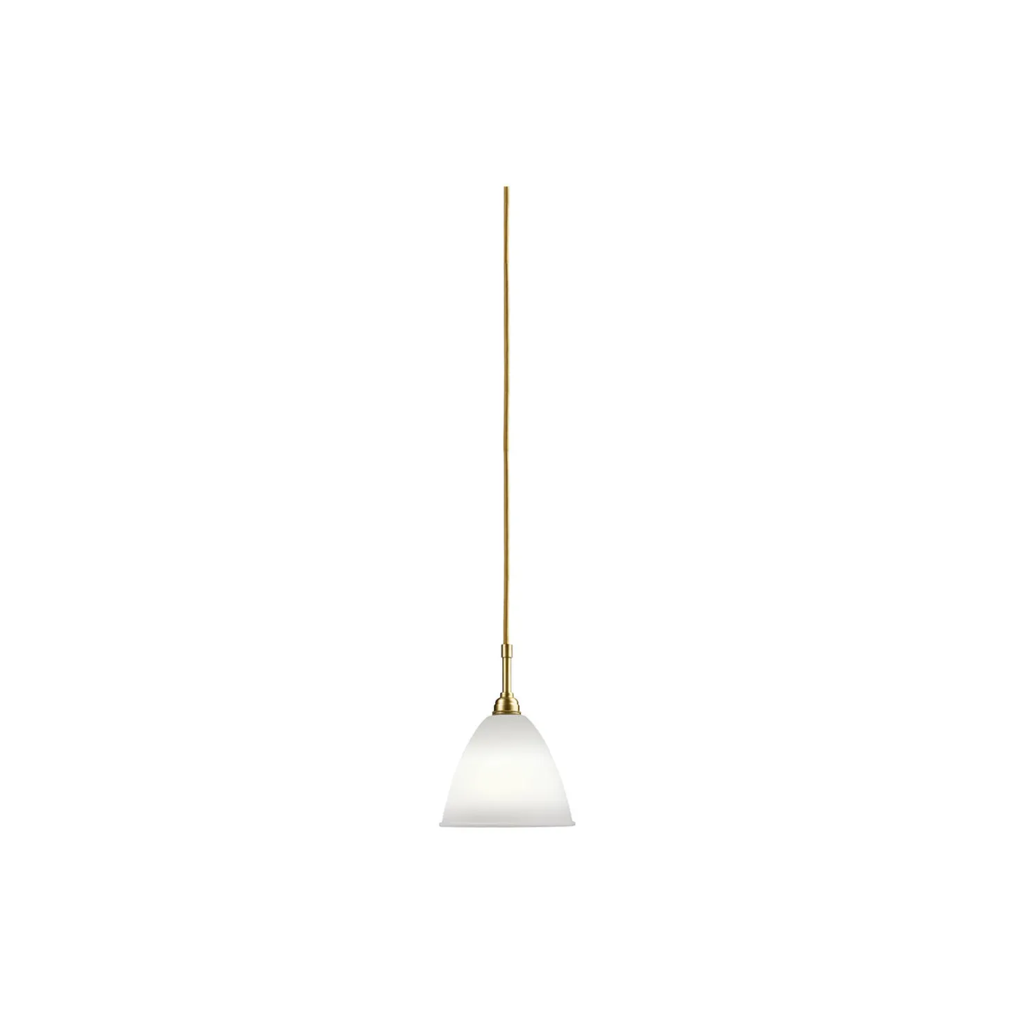 Bestlite BL9 Pendant med skærm i benporcelæn, baldakin i messing samt ledning i stof fra GUBI. Farve: bone china/brass. Mål: H: 34 x Ø 16 cm. Lyskilde: 4-6W LED E14. Design: Robert Dudley Best.