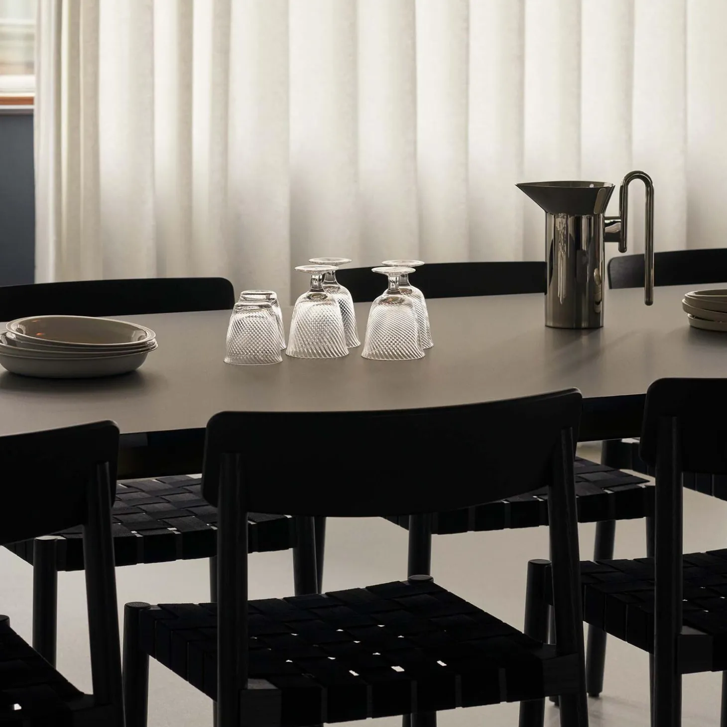 - Materiale: sortlakeret ask og asketræsfinér med sæde i hørflet