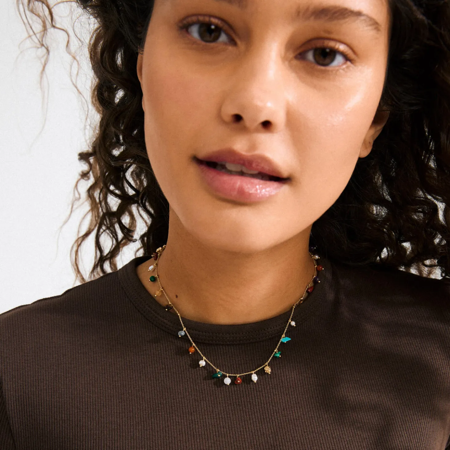 Between the pauses, new paths emerge! Tilføj et dash af luksus-boho til dit look med den guldbelagte BETWEEN-halskæde fra Pilgrim. Farverige halvædelsten som bl.a. Ametyst, Malachite, Aventurine, Turkis, Quartz og Tiger Eye skaber en vibrant, grounded vibe, – et musthave til dig, der elsker personlighed i dit style game. Style den med et flowy dress, en chunky cardigan og slouchy boots for et overbevisende boho-stilet look. Det perfekte accessory for en autentisk og afslappet stil.
