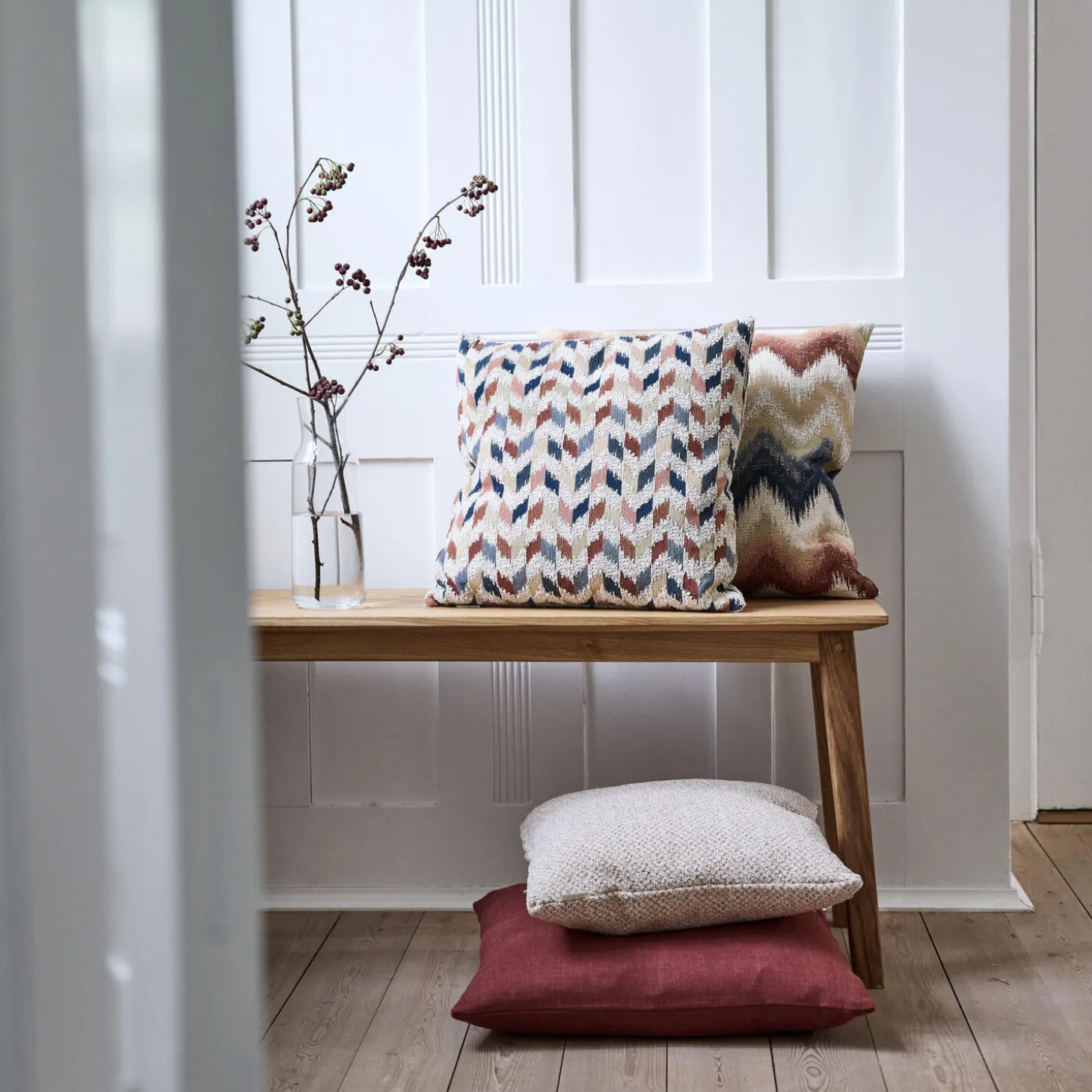 Det abstrakte zigzagmønster kombineret med blød bouclé og et strejf af shine, gør Bianca puden iøjnefaldende, mens den tilføjer ekstra hygge til dit hjem. Bianca puden er vævet i højeste kvalitet for en lang og slidstærk holdbarhed.