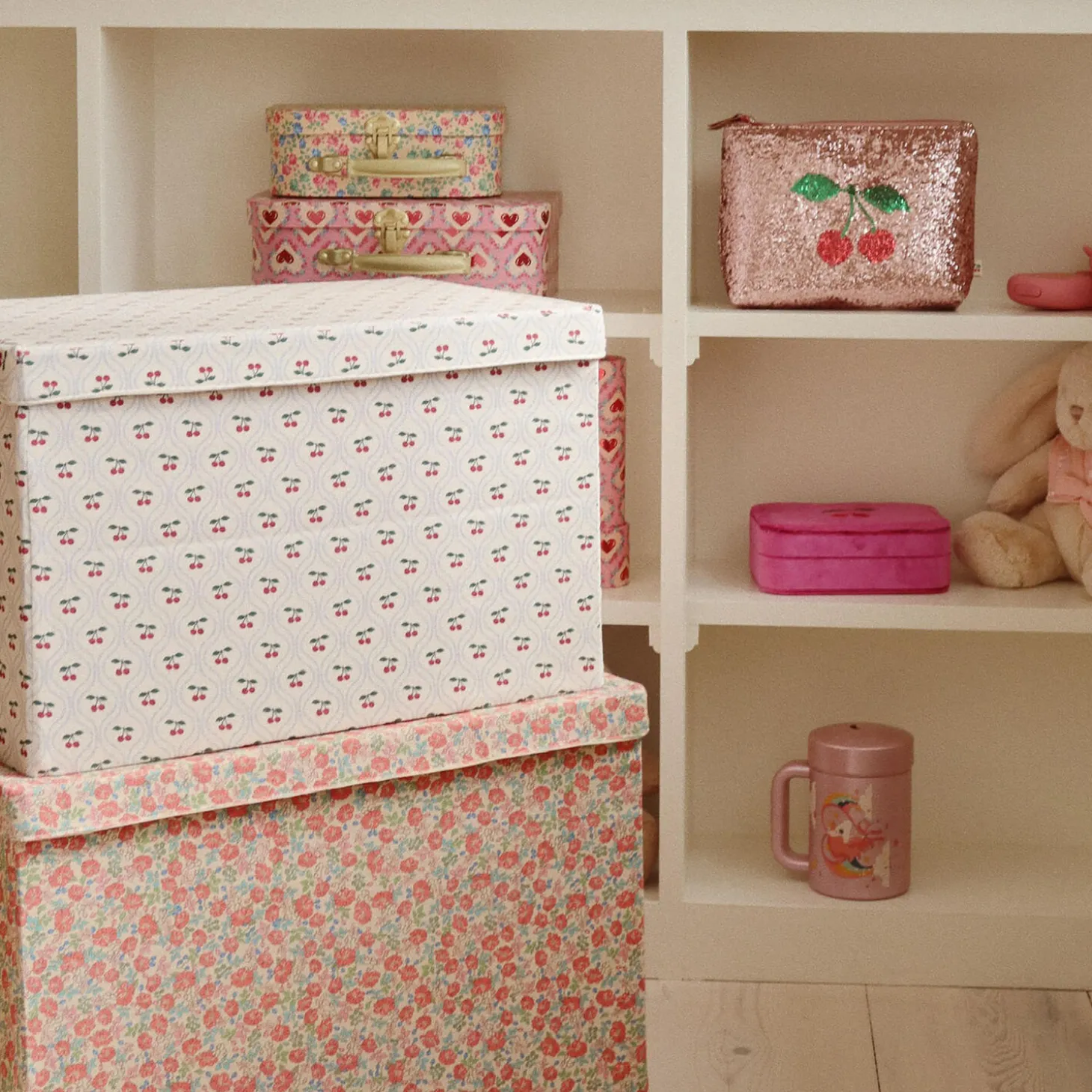 Foldable basket for cute and convenient storage. Use it to stow away toys, legos, and other knick-knacks that need a home.Height: 30 cmWidth: 47 cmDepth: 32 cmMade from 70% cotton and 30% polyester with a 100% cardboard filling.