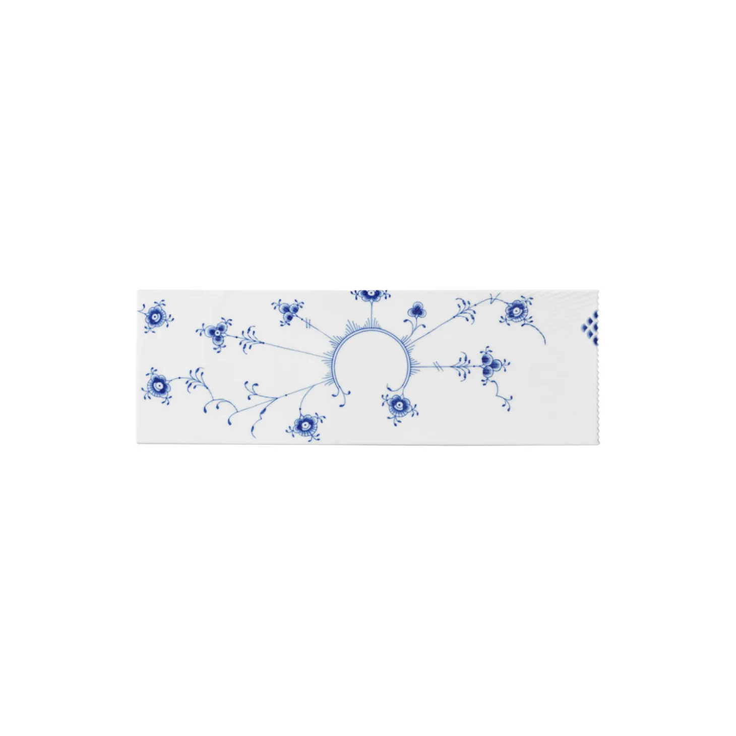 Blå Elements serveringsbræt i porcelæn fra Royal Copenhagen. Som det største af to serveringsbrætter i Blå Elements-stellet, er dette serveringsbræt et bevis på det sirlige håndværk bag det håndmalede stel. Serveringsbrættet er skabt med en uhøjtidelig kombination af klassiske, håndlavede detaljer og er håndmalet med et legende mønster af stiliserede, florale elementer, der vokser fra midten og rækker ud mod riflerne og den takkede kant. Med sine 36 cm er serveringsbrættet perfekt at bruge til anretninger af blandt andet oste og charcuteri.