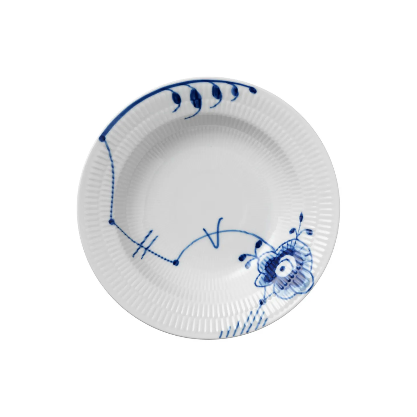 Blå Mega Riflet dyb tallerken i porcelæn fra Royal Copenhagen. Denne Blå Mega Riflet Dyb Tallerken på 21 cm prydes af stellets ikoniske, håndmalede blomster og skarpe linjer, der mødes af tallerkenens klassiske, brede kant, hvor der kan ligge sprødt tilbehør til din serverede ret. Tallerkenen kan bruges til suppe og små forretter eller som en lille serveringsskål.