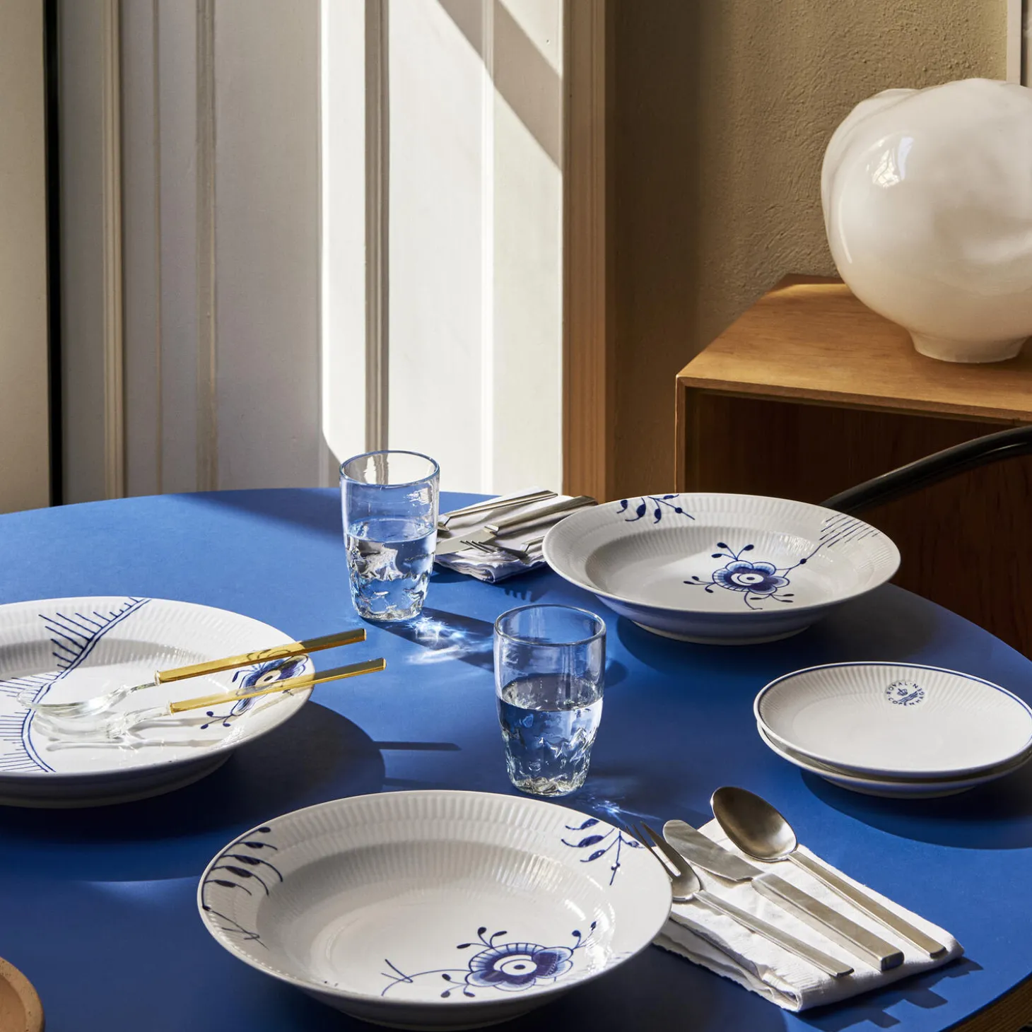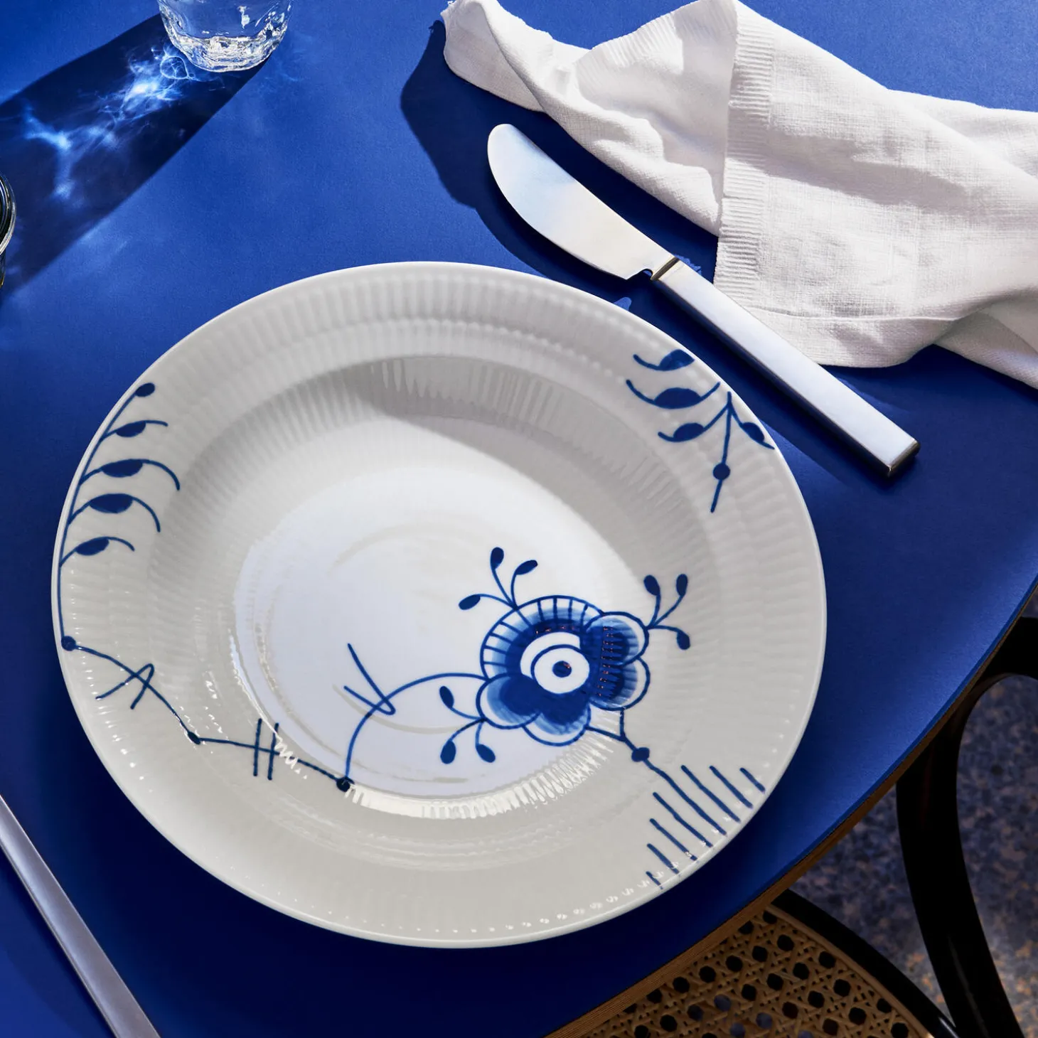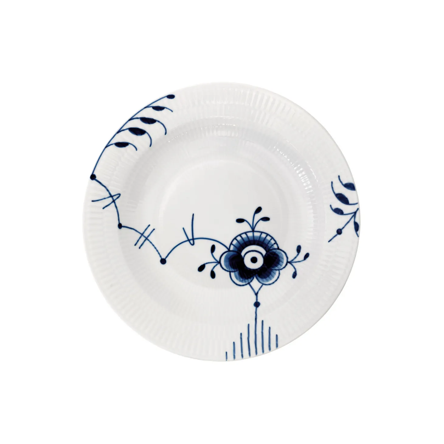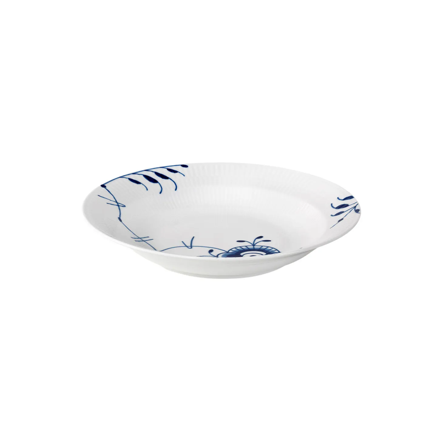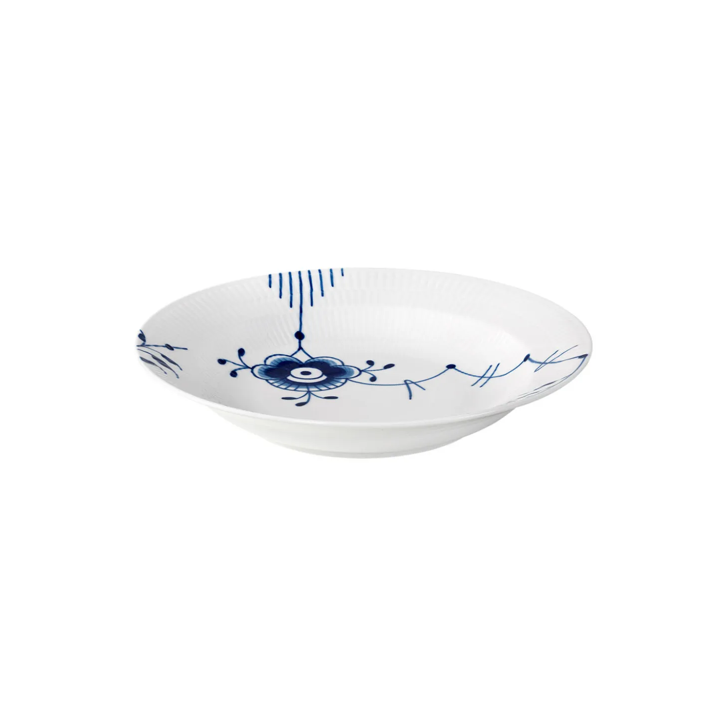 De håndmalede koboltblå dekorationer ser smukke ud på denne Blå Mega Riflet dybe tallerken. Blå Mega Riflet mønsteret blev skabt i 2000 af Karen Kjælgård Larsen og er blevet et ægte Royal Copenhagen ikon. Med sine 27 cm i størrelse, er denne dybe tallerken ideel til hverdagsbrug til dine yndlingspastaretter.