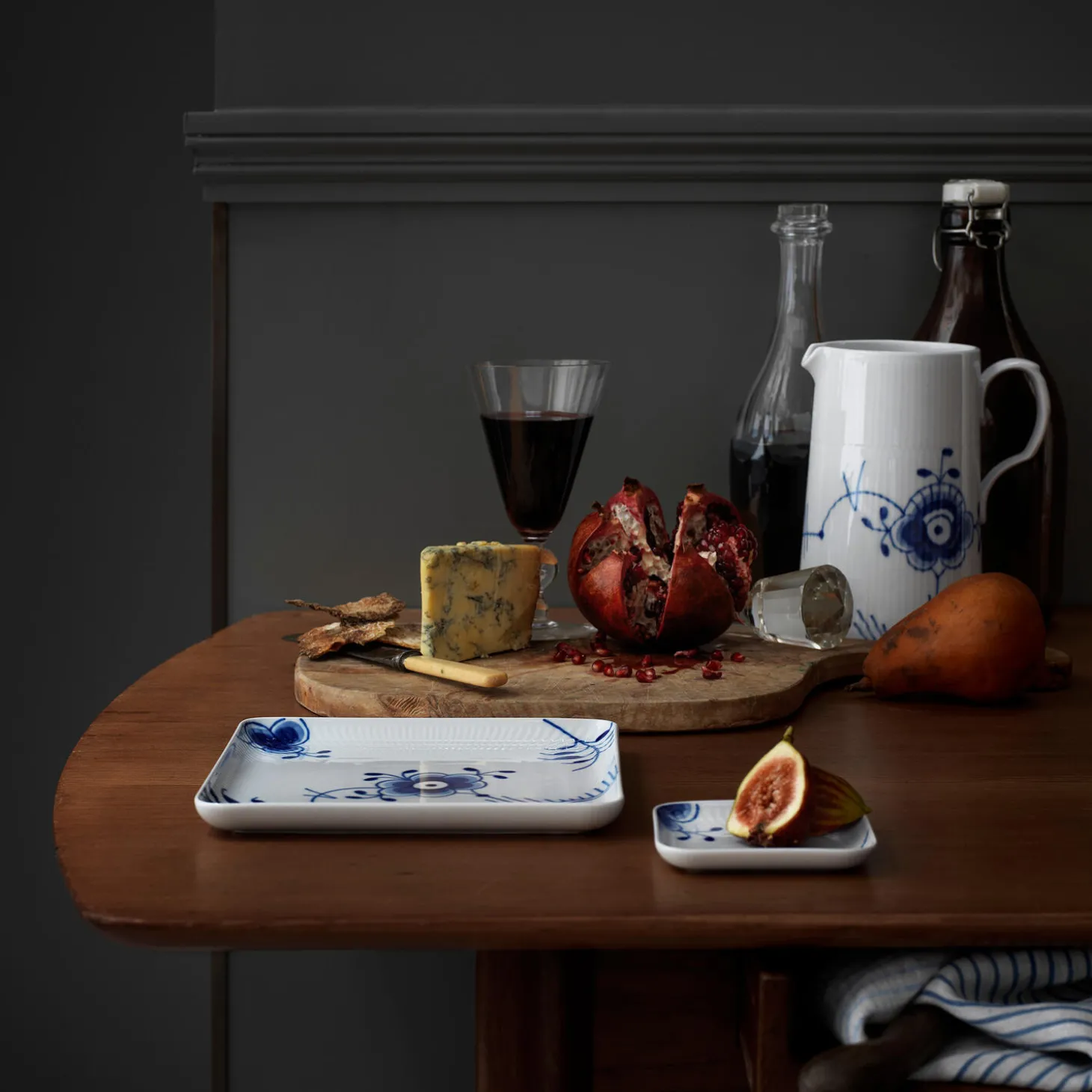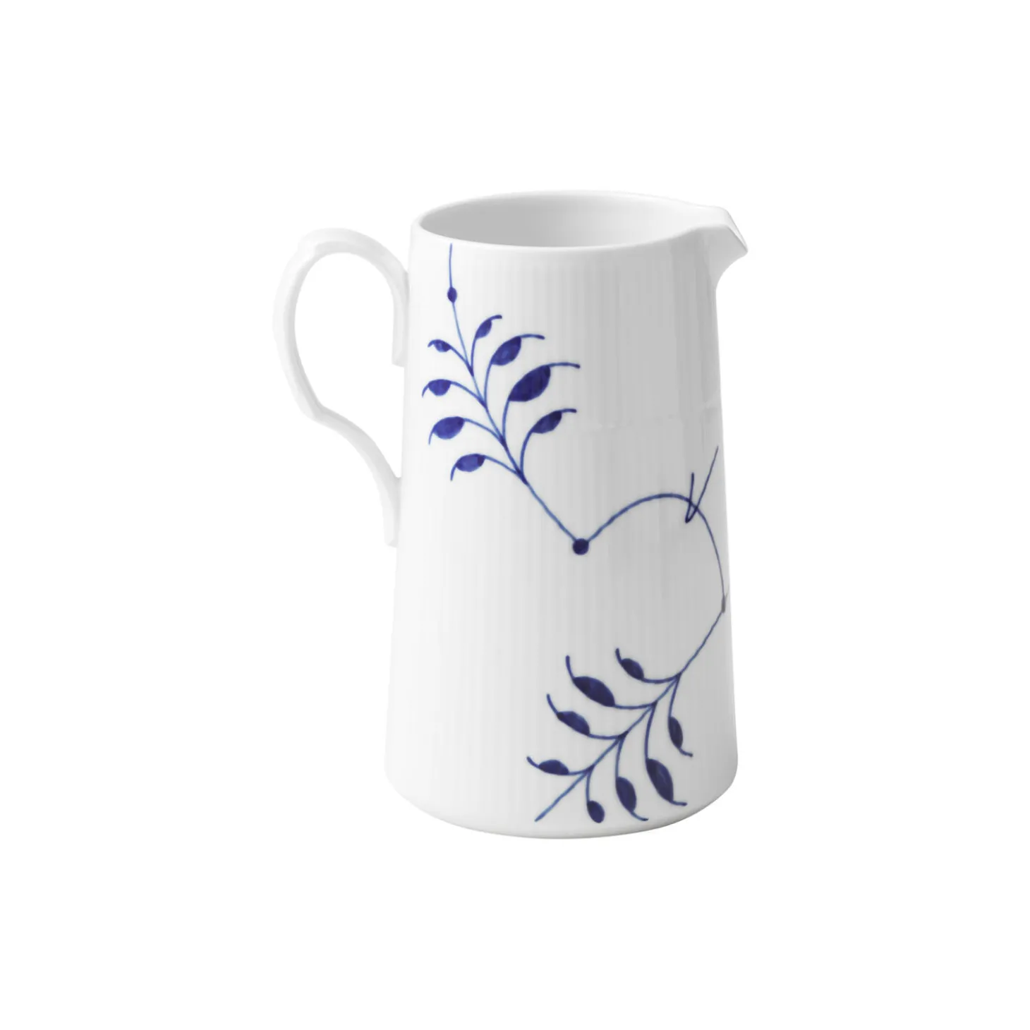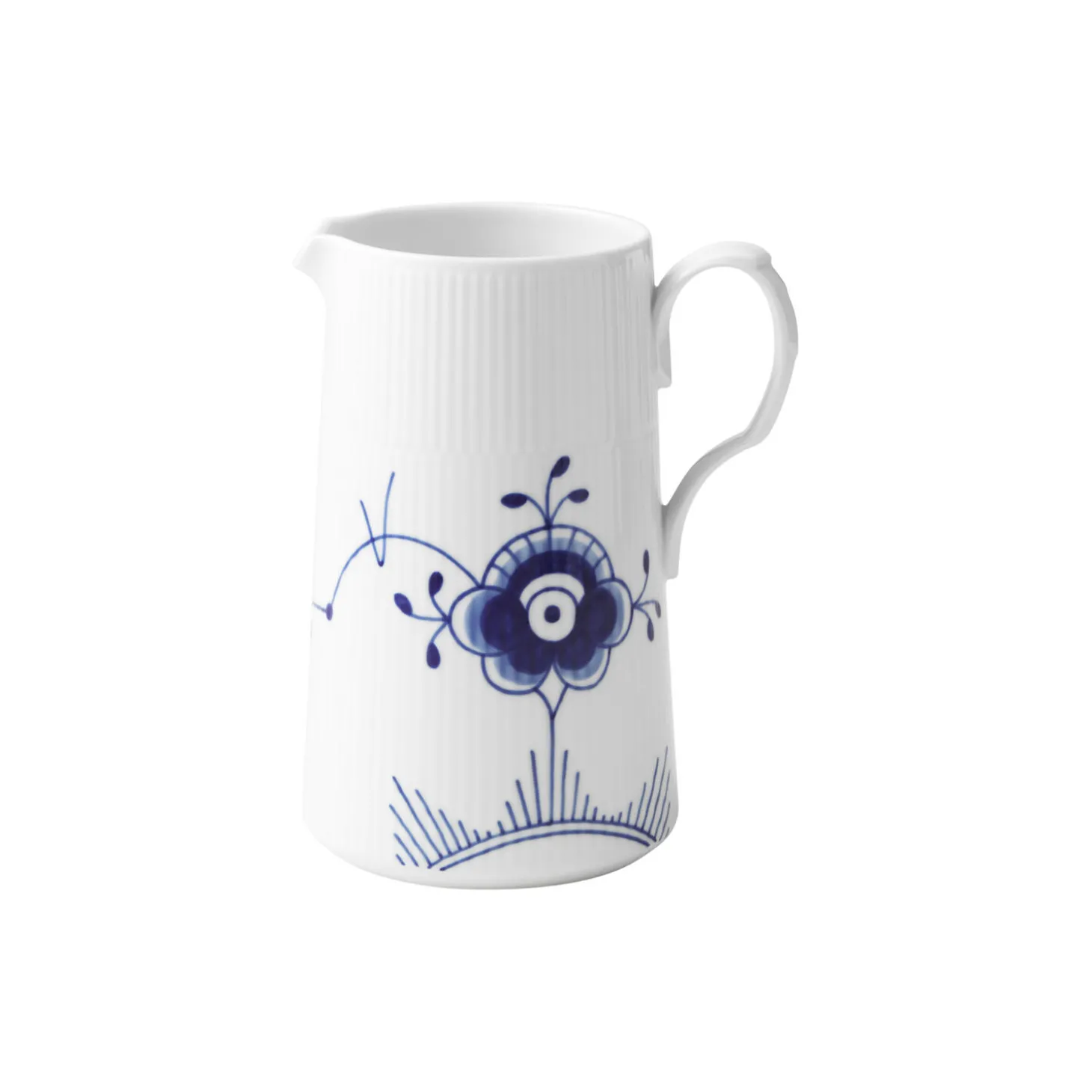 Blå Mega Riflet kande i porcelæn fra Royal Copenhagen. Porcelænskanden rummer 150 cl af dine yndlingsdrikke, kolde som varme. Den dybe koboltblå farve på det håndmalede mønster fra Blå Mega Riflet gør enhver drik indbydende, hvad enten kanden bruges til saftevand eller varm kakao.