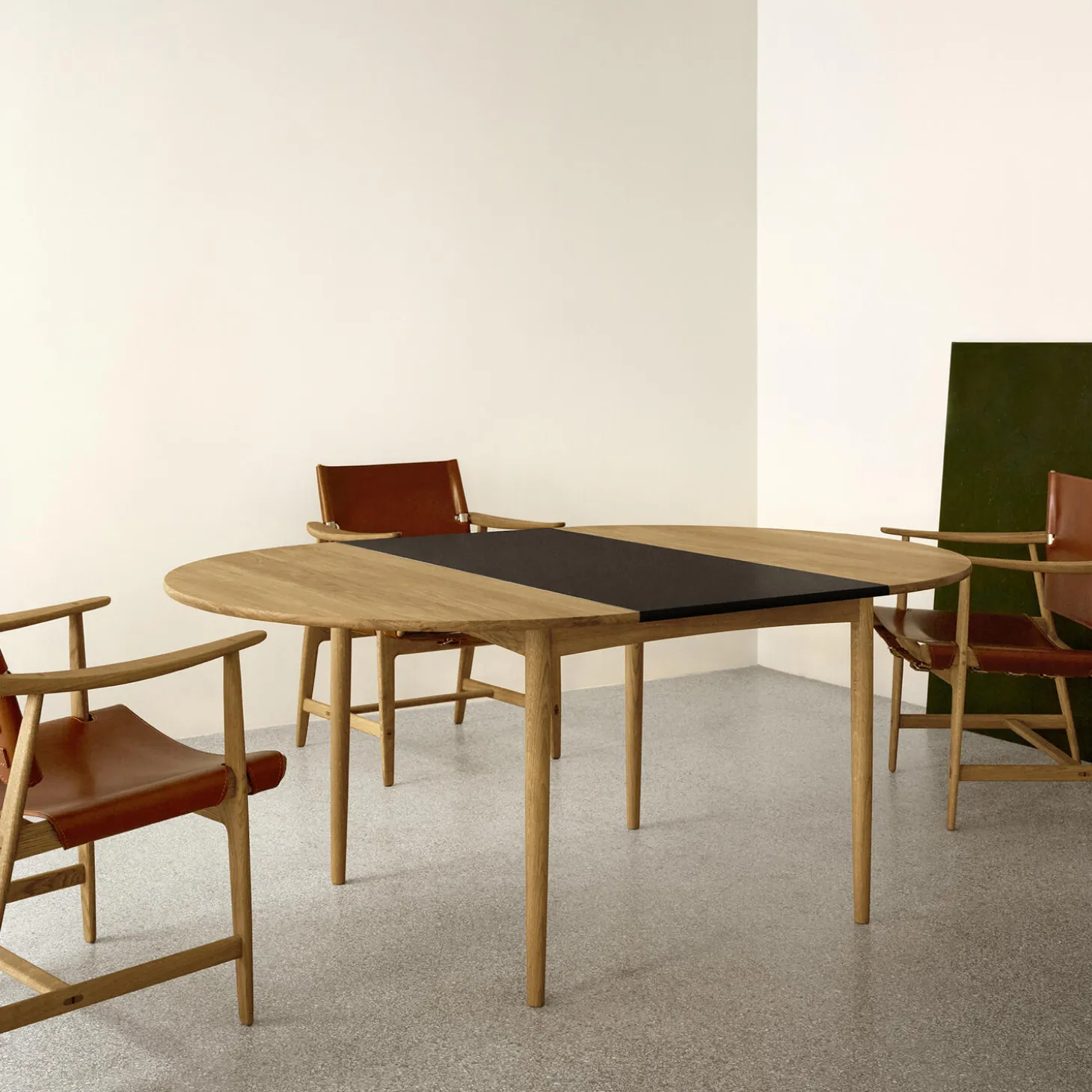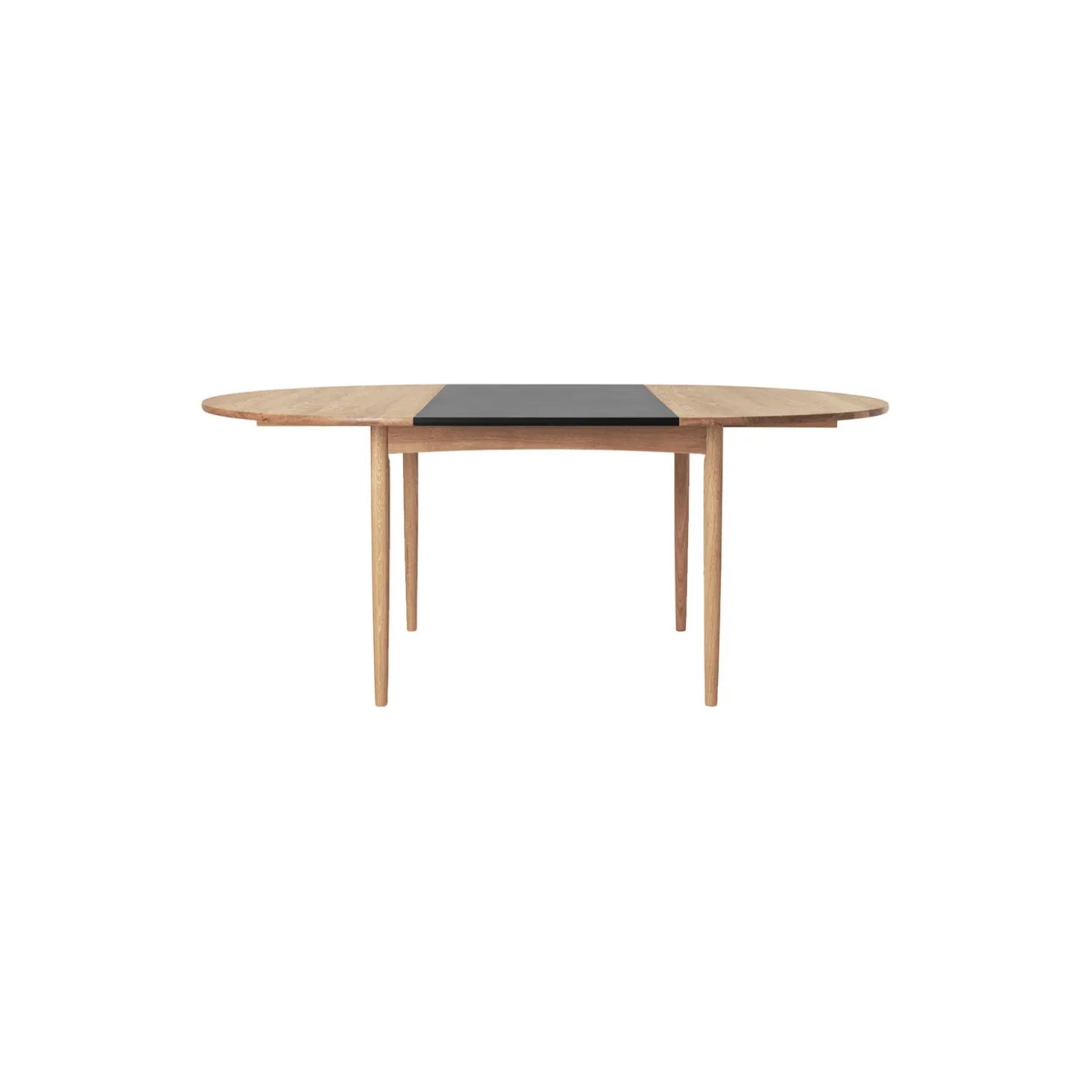 BM0121I Ilægspladen til BM0121 Spisebordet af Børge Mogensen er udført i massivt træ eller MDF og måler 120 x 60 cm. Bemærk, at ilægspladens træstruktur kan variere i forhold til bordpladen.