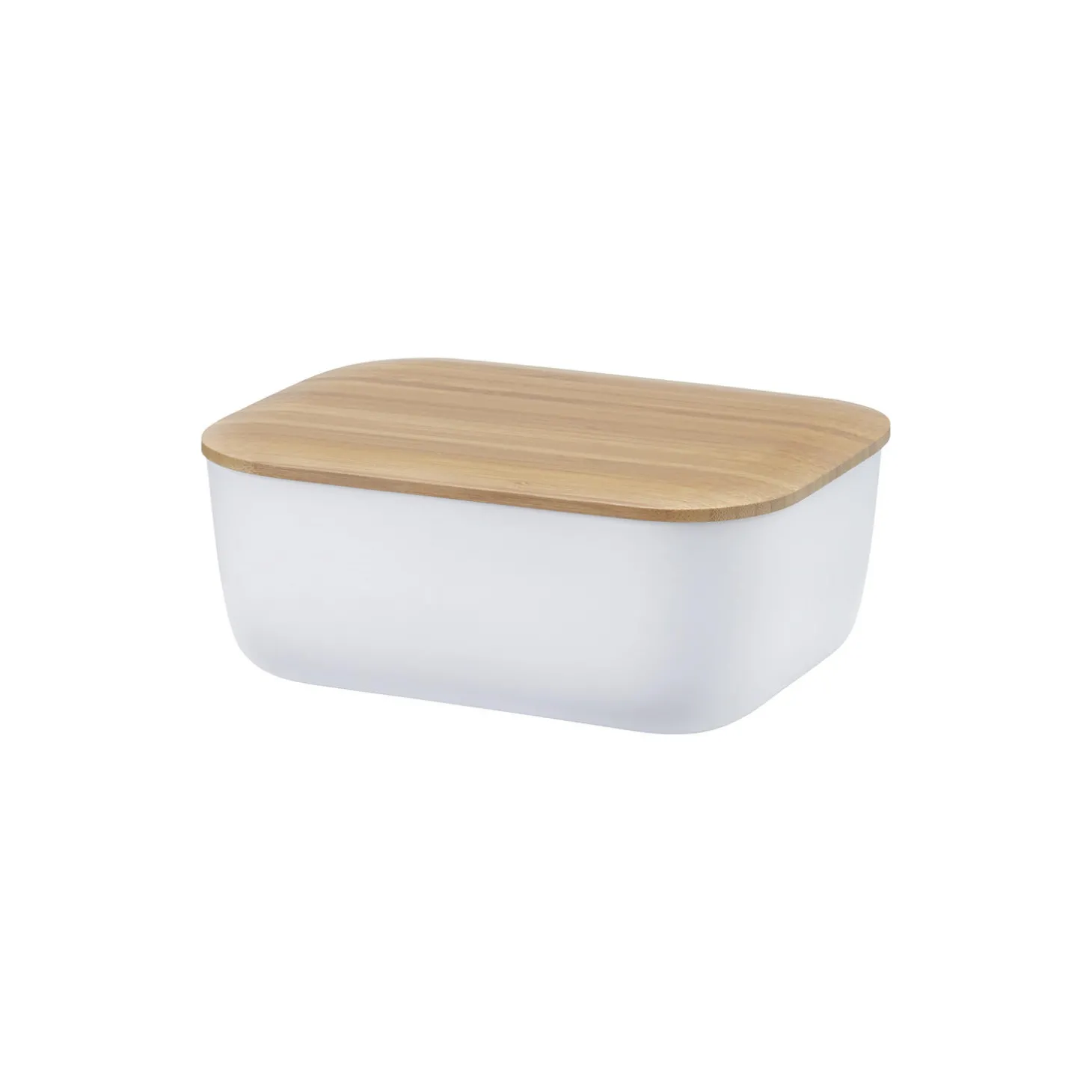 BOX-IT smørboks pynter på ethvert morgenbord. Brug BOX-IT smørboks til din favorit smør eller smørbare blandingsprodukt. Den passer til de fleste størrelser. BOX-IT smørboks matcher den populære BOX-IT brødkasse, designet af Jehs & Laub. BOX-IT smørboks er fremstillet i PBT plast med bambuslåg.