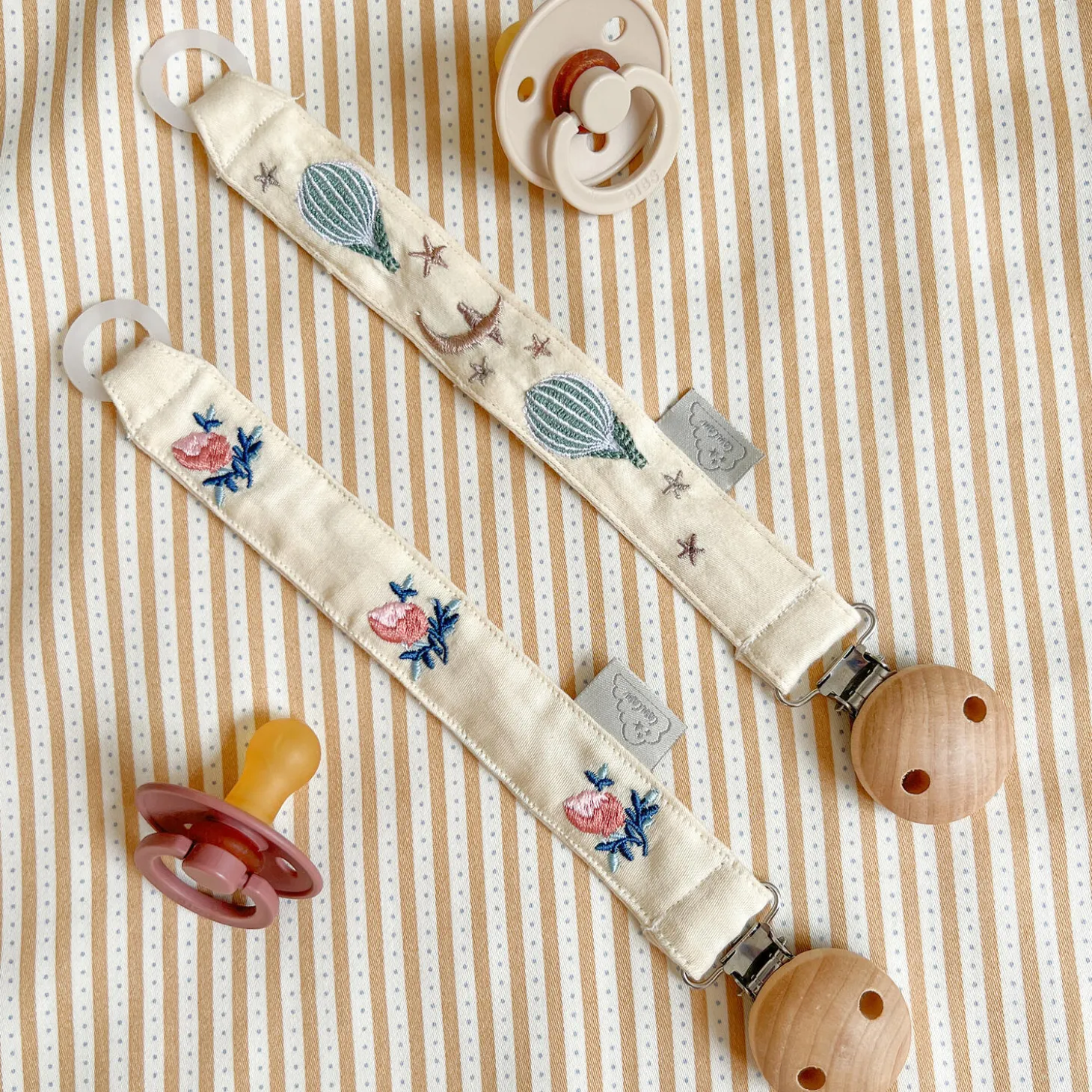 Sørg for at din barns sut altid er lige ved hånden med vores smukt broderede suttesnor i det eventyrlige Dreamland print. Suttesnoren er fremstillet af GOTS-certificeret økologisk bomuld med fint broderi af søde lyserøde sløjfer. Klipsen kan nemt sættes fast på dit barns tøj eller savlesmæk, så sutten forbliver ren og ikke falder på gulvet. Med sit raffinerede broderi er suttesnoren en både praktisk og elegant accessory til de elskede små. Oplagt gaveidé til babyshower og fødselsgaver.
