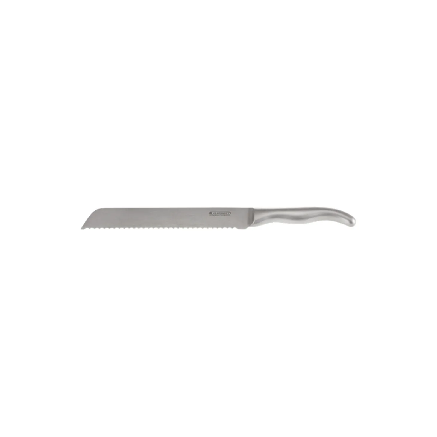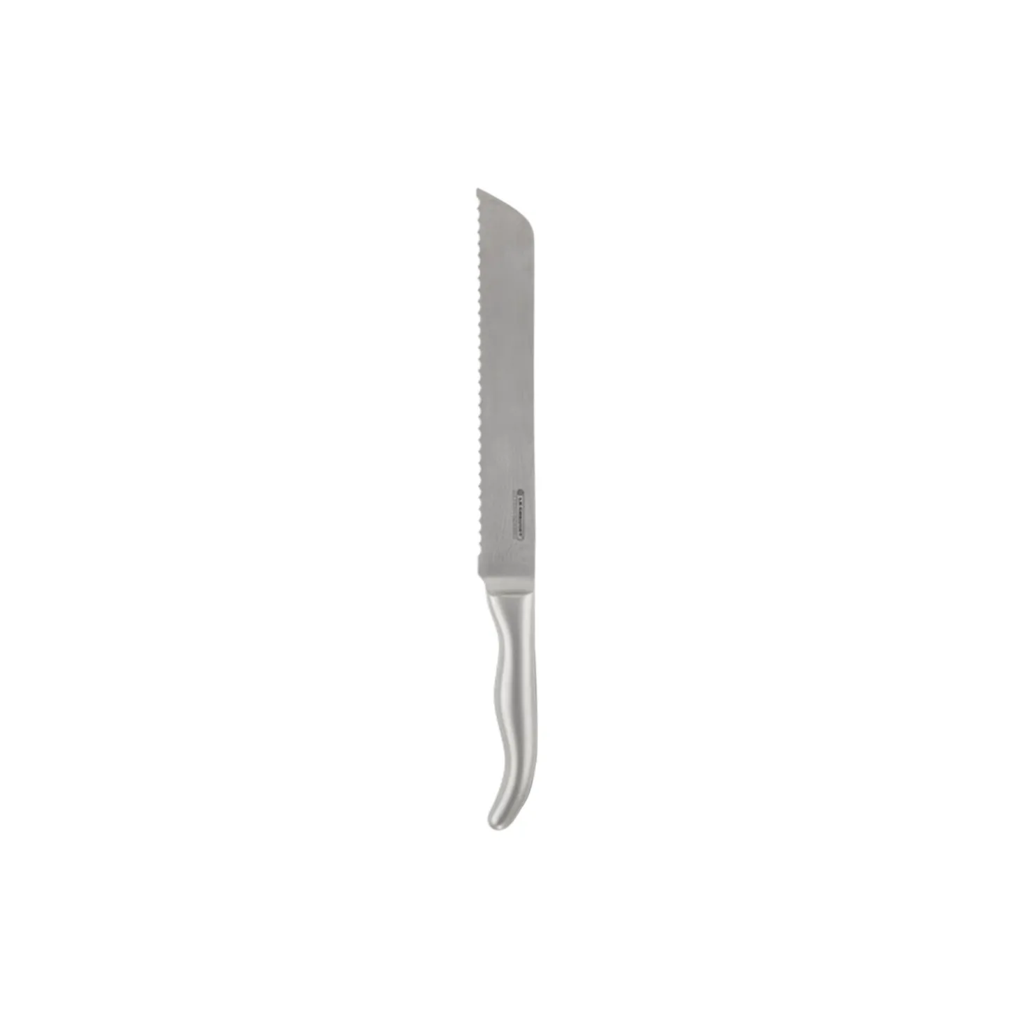 Brød. Flutes. Kager. Eller endda stegt kød pakket ind i dej. Skær det hele uden besvær med denne brødkniv fra Le Creuset. Den er professionelt udført og har et blad af damaskstål med et superskarpt, bølget skær. Håndtaget i rustfrit stål giver et elegant udtryk.