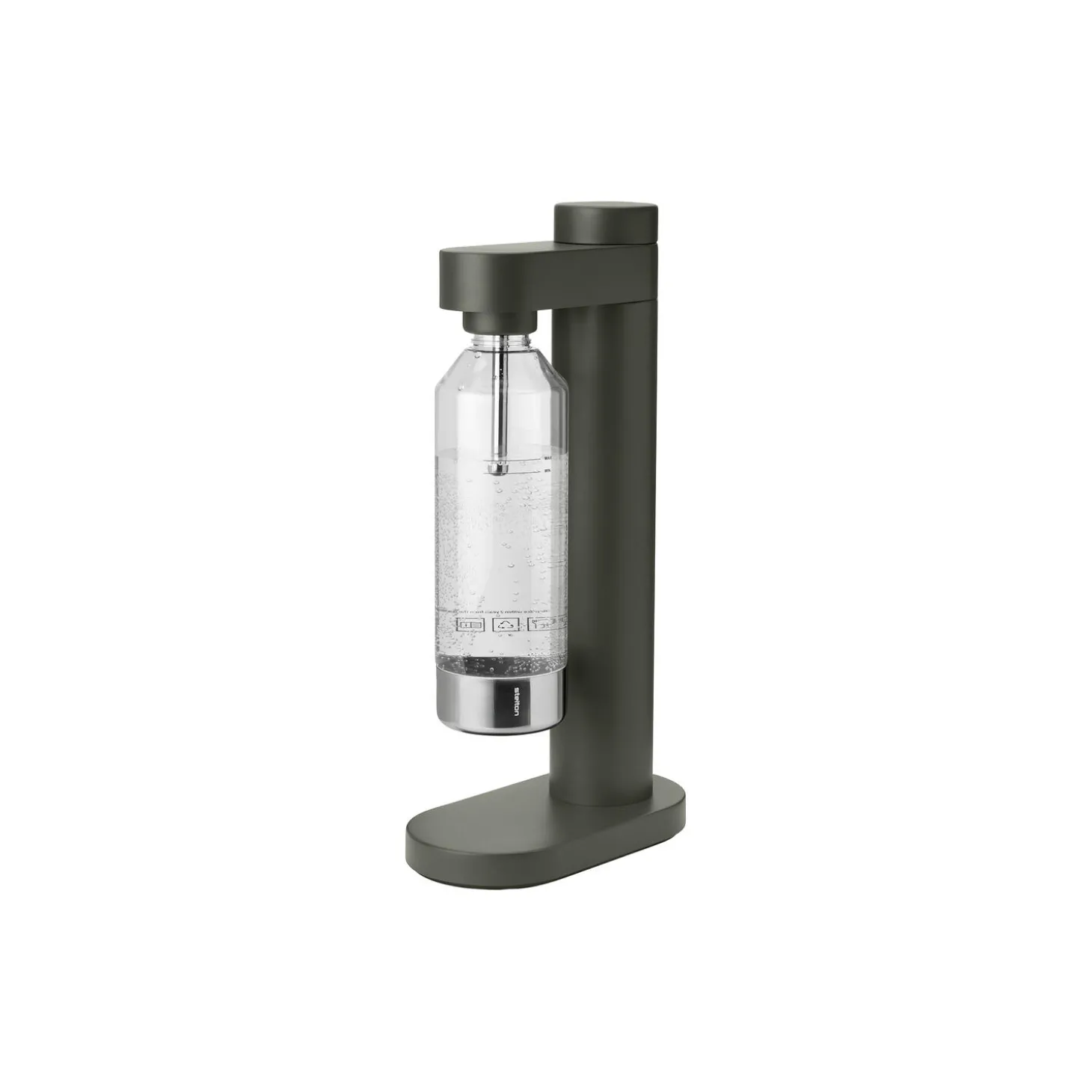 Med Brus kulsyremaskine sparer du miljøet for store mængder af unødigt plast ved at lave din egen danskvand eller sodavand i genanvendelige flasker. Designet af sodavandsmaskinen er så elegant, at du kan glæde dig over at have den stående fremme på køkkenbordet. Designeren bag, Søren Refsgaard er kendt for sit rene funktionelle design, hvor alt overflødigt er skåret væk. Det er Brus et særdeles godt eksempel på. Designet trækker på de cylindriske former, der er klassisk for Steltons design. Den cylindriske form ses først og fremmest i den ultraslanke beholder til kulsyrepatronen og går igen i kulsyreknappen, der intuitivt drejes med uret for at tilpasse mængden af kulsyre og drejes kontra, når flasken skal løsnes fra maskinen. Brus kulsyremaskine leveres med et styk Brus flaske.