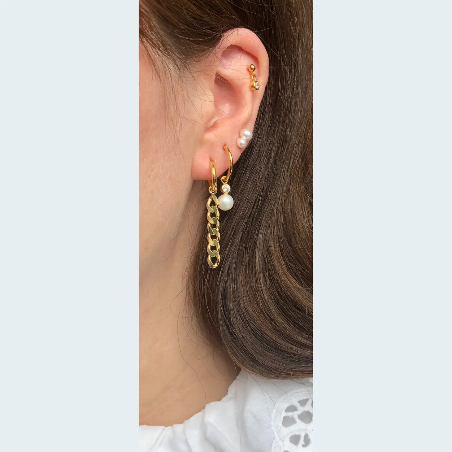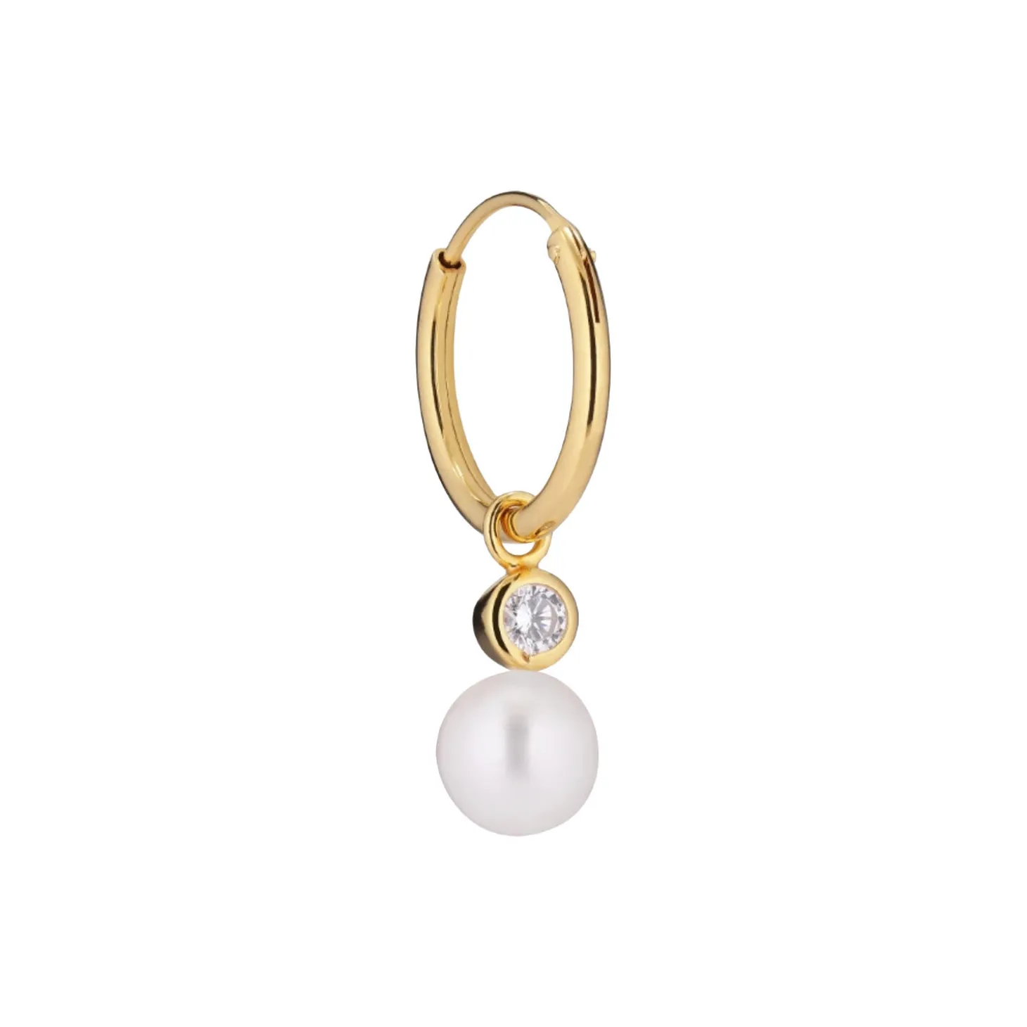 15mm hoop ørering med hvid ferskvandsperle og klar sten. Sælges enkeltvis.