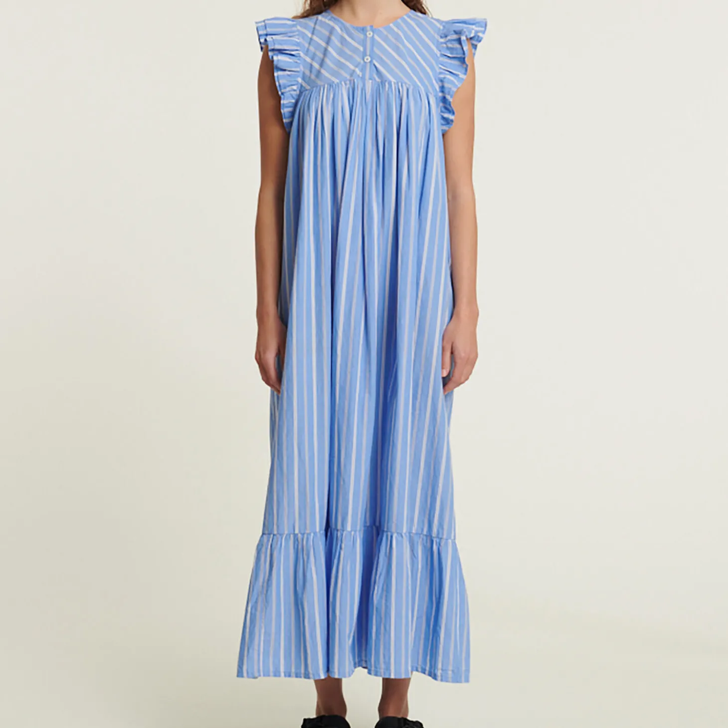 Candy Dress is a long dress, with a placket at front and a ruffle tier at bottom.