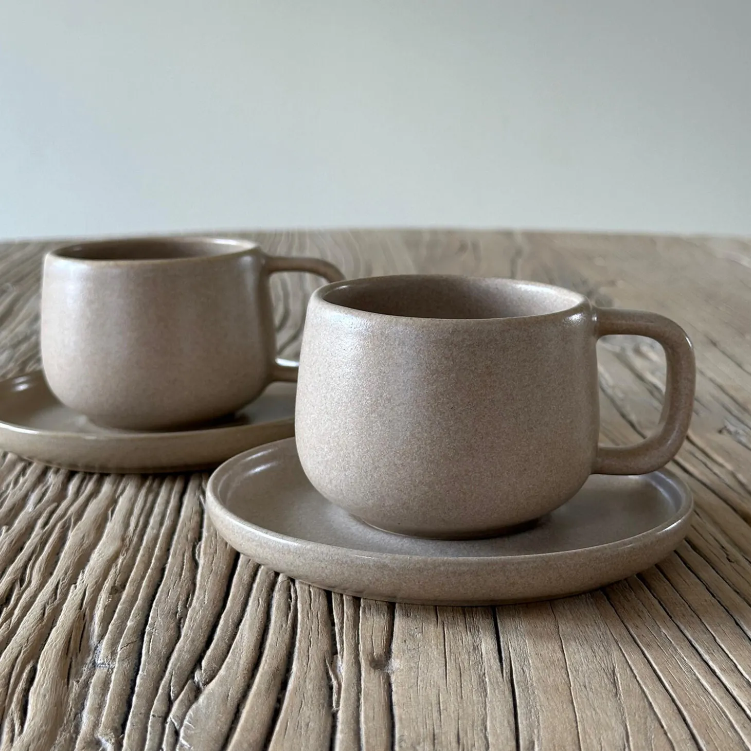 CAPRI tesættet er et elegant sæt af tekop og underkop, som skaber nyt liv til din yndlings theblanding eller kaffe. Forkæl dig selv eller dine gæster med varme drikke i CAPRI tesættet i mat taupe eller varm sand.