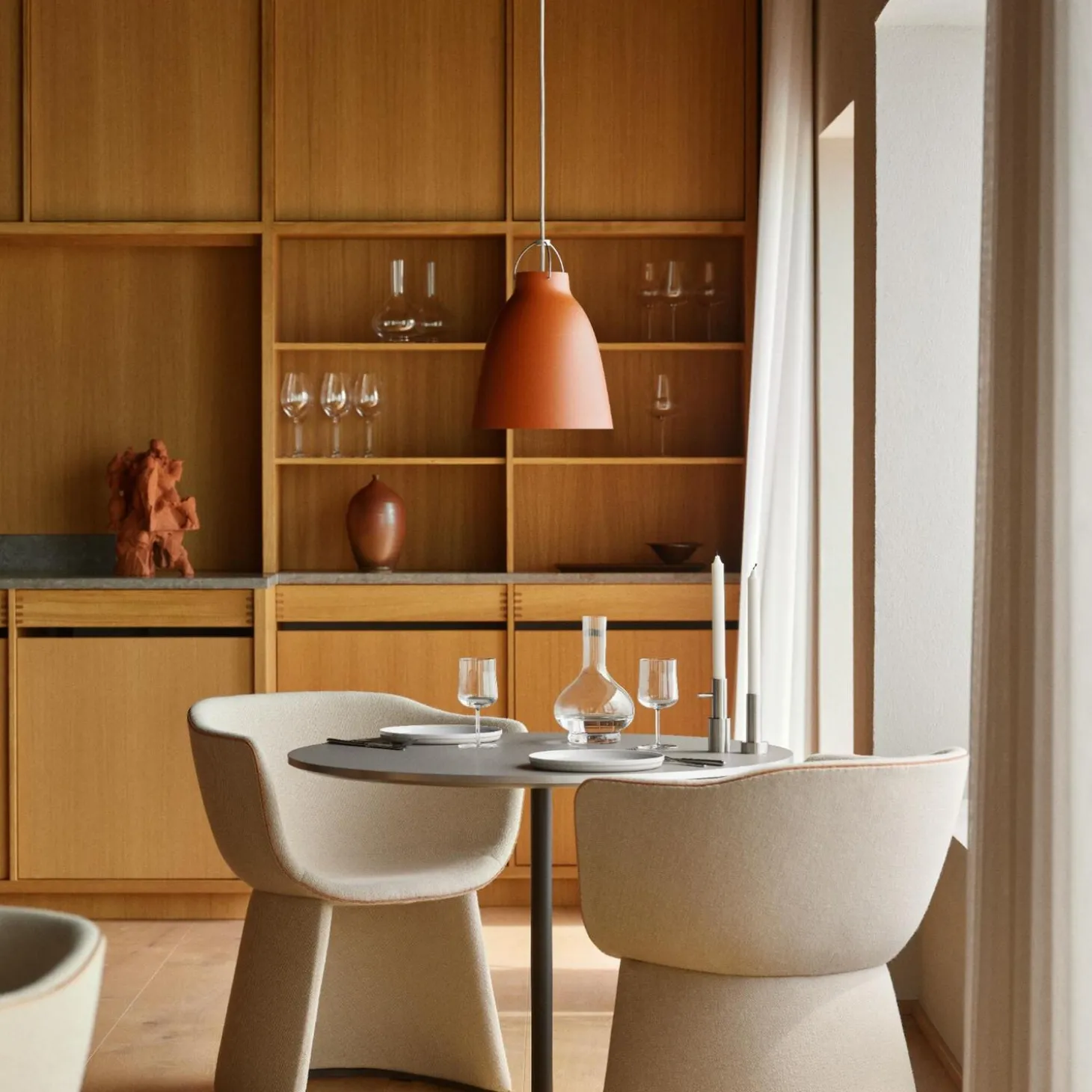 Caravaggio™ lamperne har opnået status som et vaskeægte designikon. Cecilie Manz har designet lamperne, der opdaterer en tidløs silhuet med et friskt, moderne udtryk. Den buede P1-skærm gør den perfekt som en enkelt lampe til mindre sideborde eller i klaser henover arbejdsborde og køkkenøer.