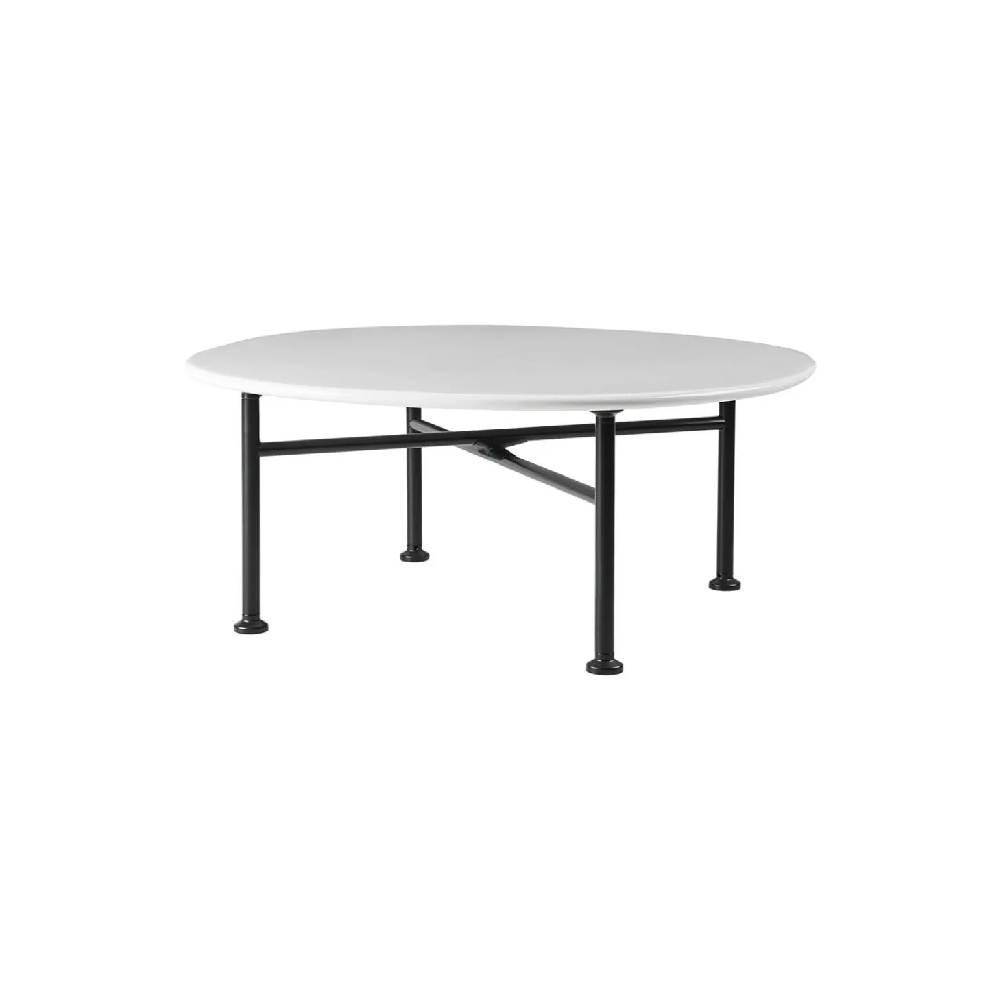 Carmel Coffee Table i glaseret stentøj og pulverlakeret galvaniseret stål fra GUBI. Farve: clam white. Mål: H: 32 x L: 75 x B: 75 cm. Design: OEO Studio.