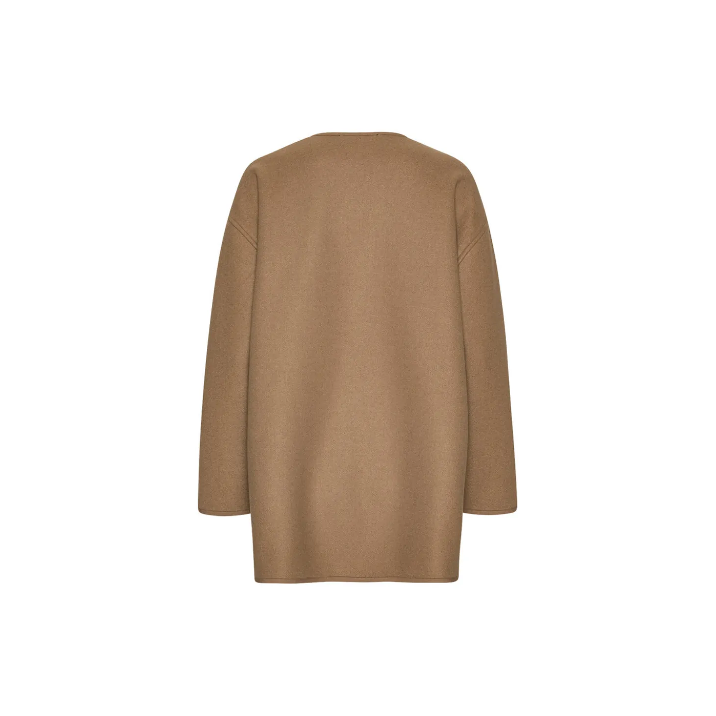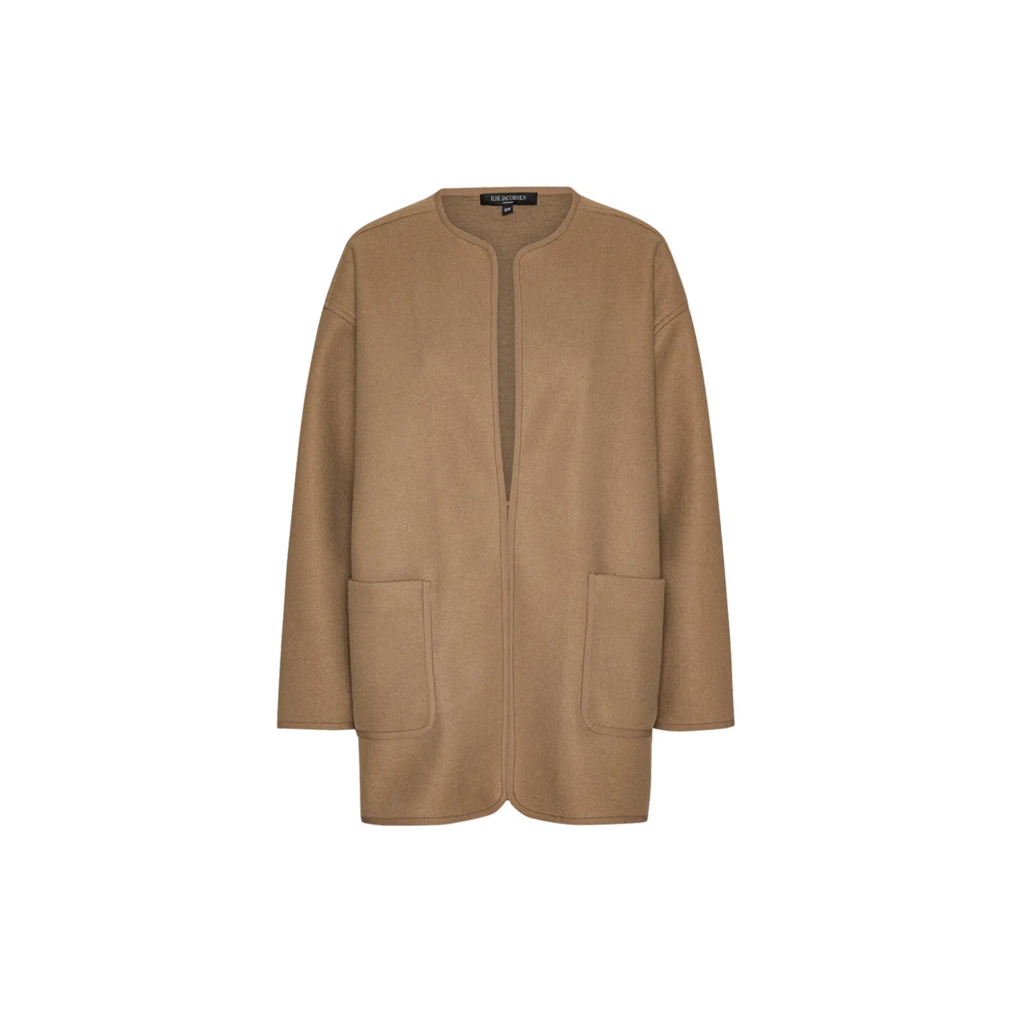 A casual felted jacket with large patched pockets designed with jersey binding at hemline, cuff and front placket. Bounded with soft inner jersey fabric for comfort. Small slits at side seam, dropped shoulders and hidden hook and bar closure at front. Simple yet timeless, it’s a versatile piece for any wardrobe.