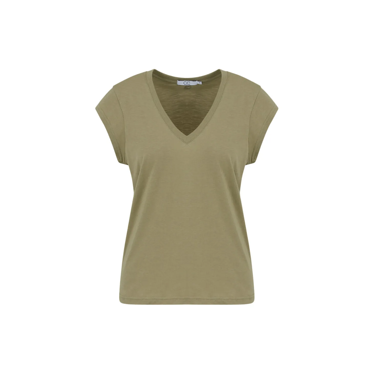 CC Heart Basic V-Neck T-Shirt i 60% bomuld og 40% polyester fra Coster Copenhagen. Farve: dusty olive.