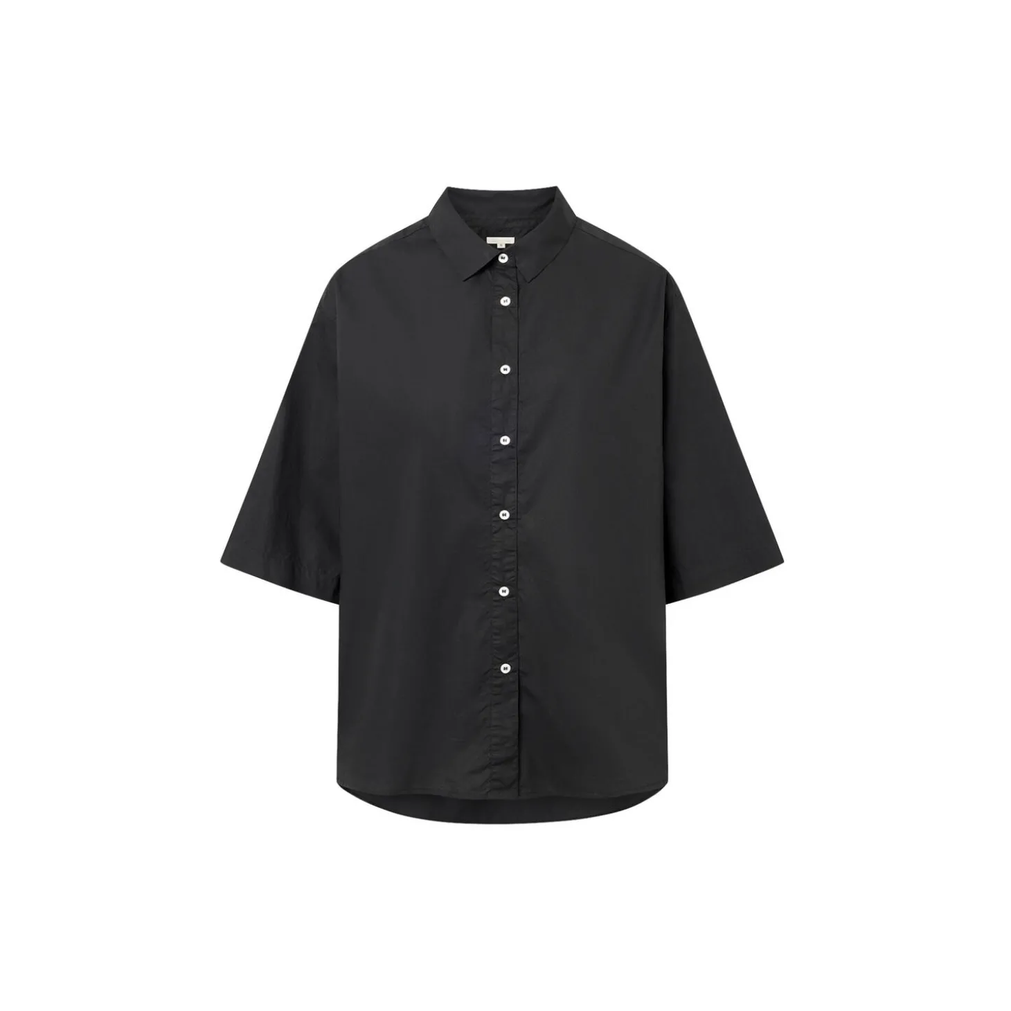 Fin skjorte i et oversized og herreinspireret fit med korte ærmer, almindelig krave og gennemknappet stolpelukning. Cecilia shirt er produceret i en let, økologisk bomuldspoplin, og alle indvendige syninger er med franske sømme for en delikat og luksuriøs finish. Få et stilfuldt, men alligevel afslappet sommersæt ved at sætte skjorten sammen med de klassiske Norah shorts eller de lidt kortere Jasmin shorts. Lav gerne et lille opsmøg på ærmet, så looket bliver endnu mere casual.