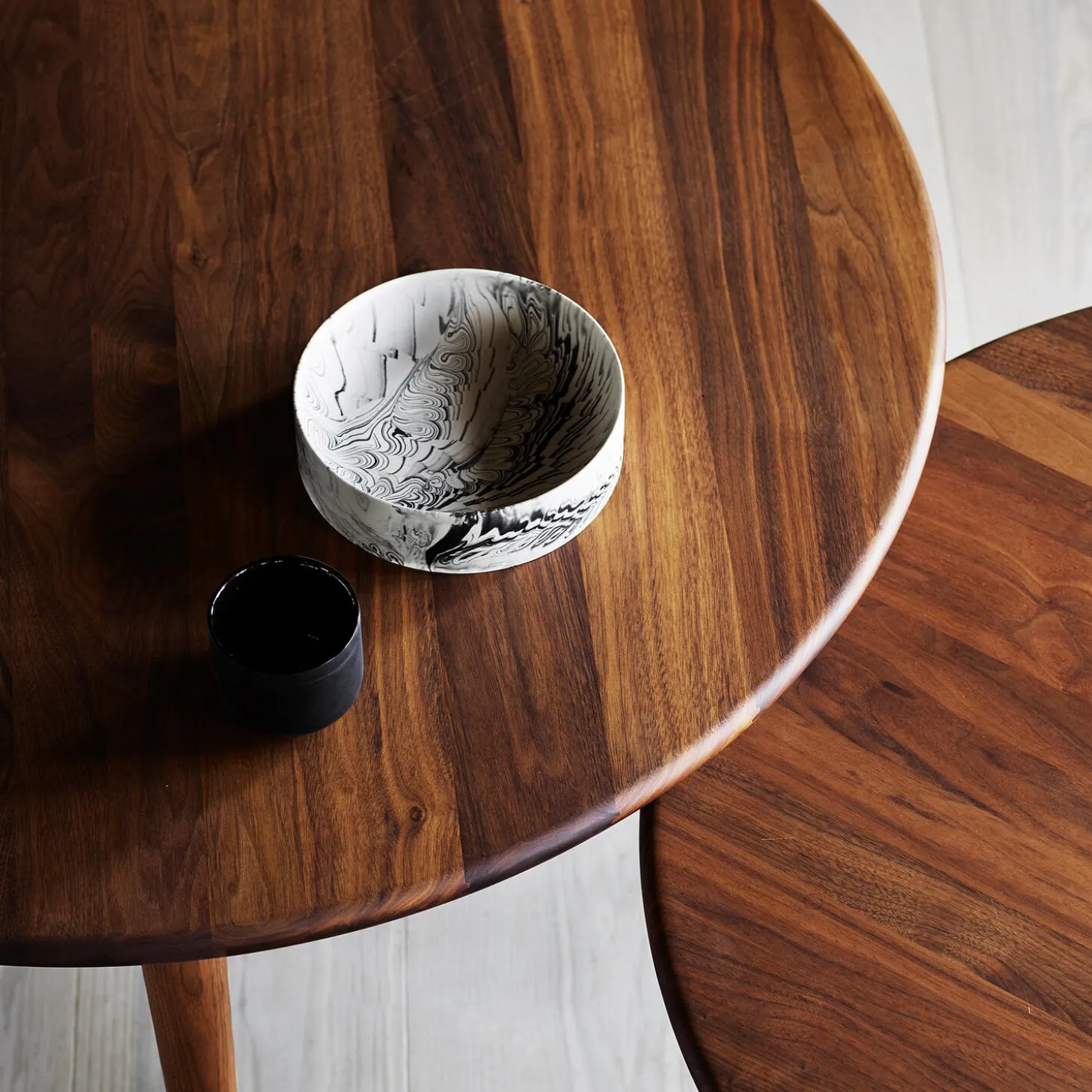 CH008 sofabord i olieret valnød fra Carl Hansen & Søn. Farve: olieret valnød. Mål: H: 44 x Ø 78 cm. Design: Hans J. Wegner.