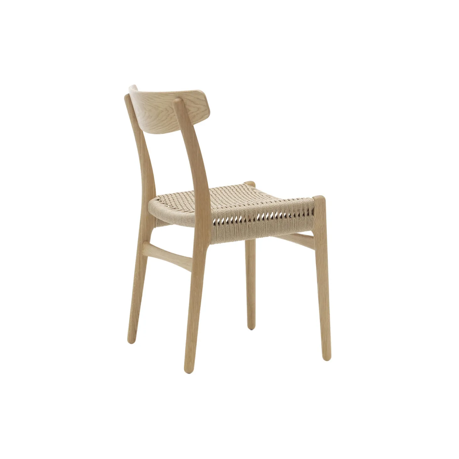 CH23 spisebordsstol i olieret eg med sæde i papirgarn fra Carl Hansen & Søn. Farve: olieret eg/natur. Mål: H: 78,6 x B: 50,3 x D: 50,3 cm. Siddehøjde: 45 cm. Design: Hans J. Wegner.