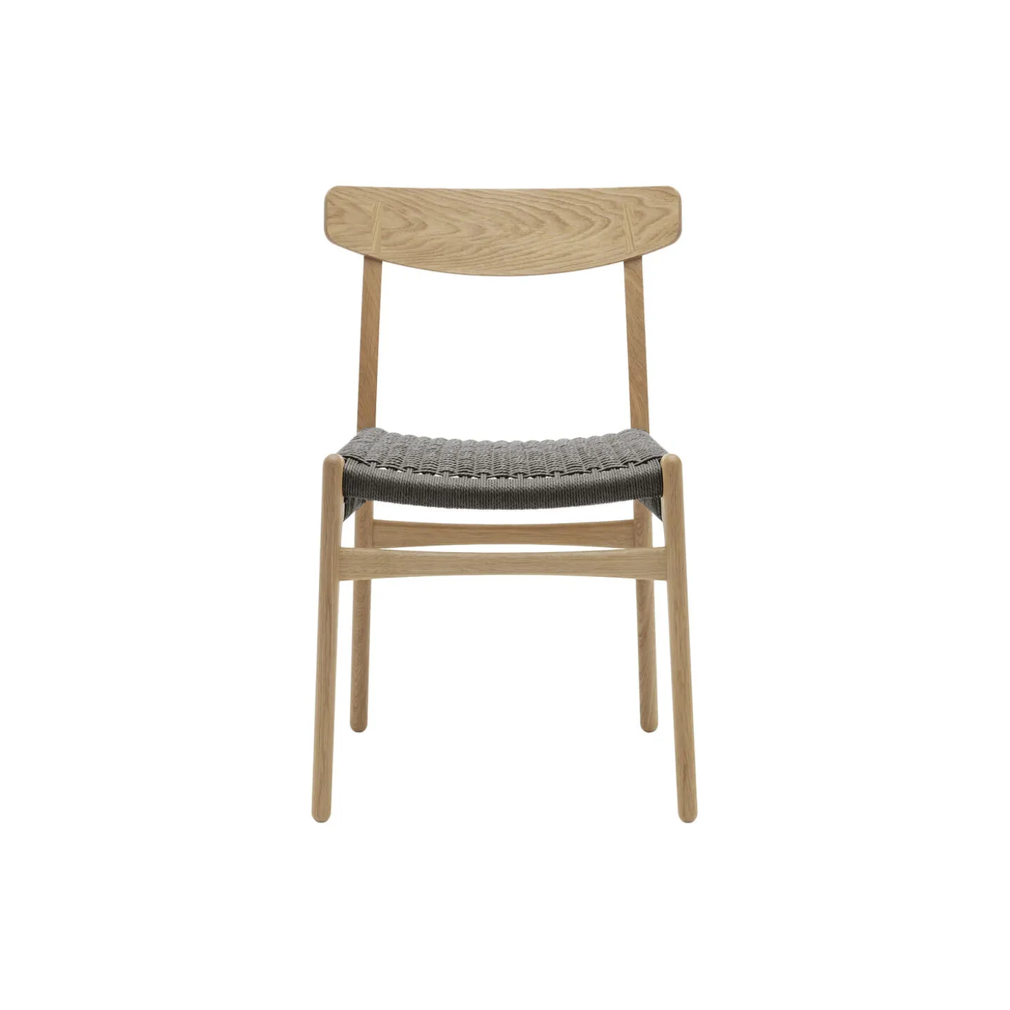 CH23 spisebordsstol i olieret eg med sæde i papirgarn fra Carl Hansen & Søn. Farve: olieret eg/sort. Mål: H: 78,6 x B: 50,3 x D: 50,3 cm. Siddehøjde: 45 cm. Design: Hans J. Wegner.