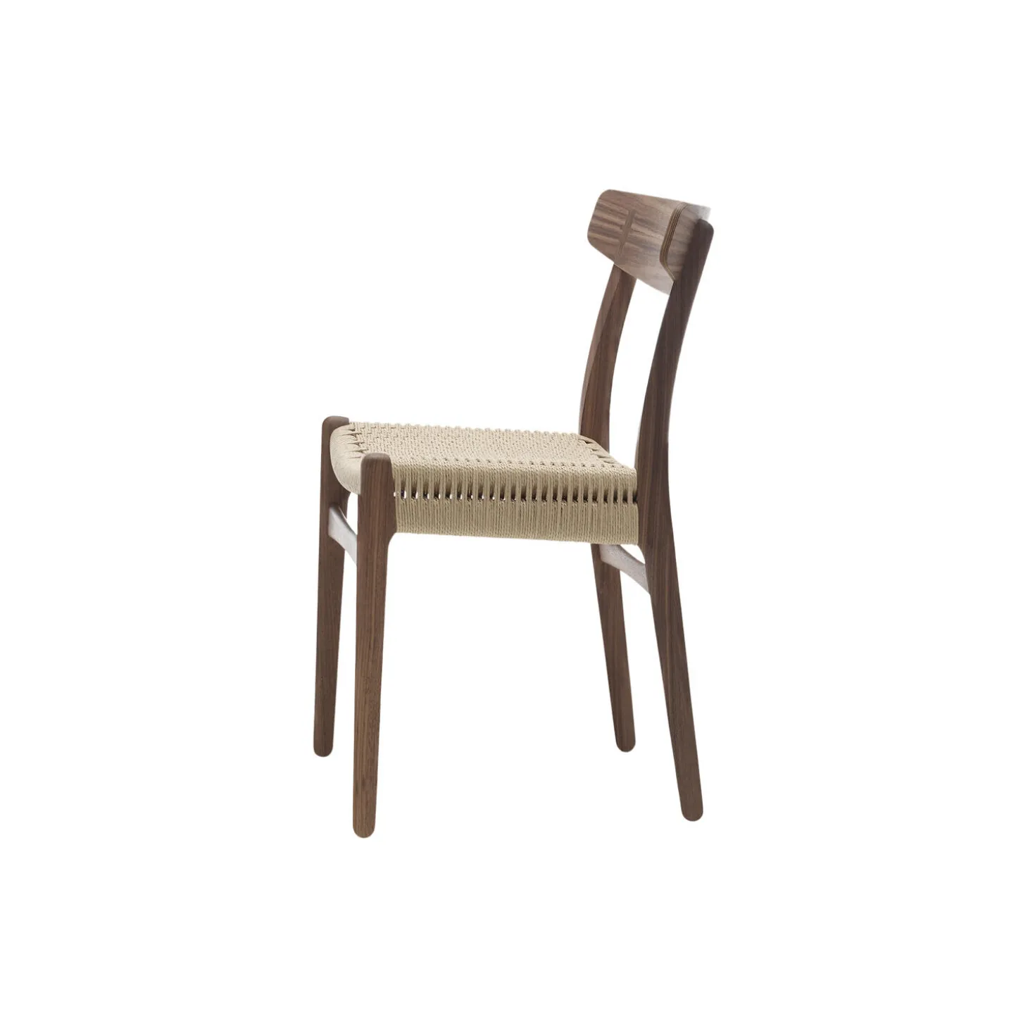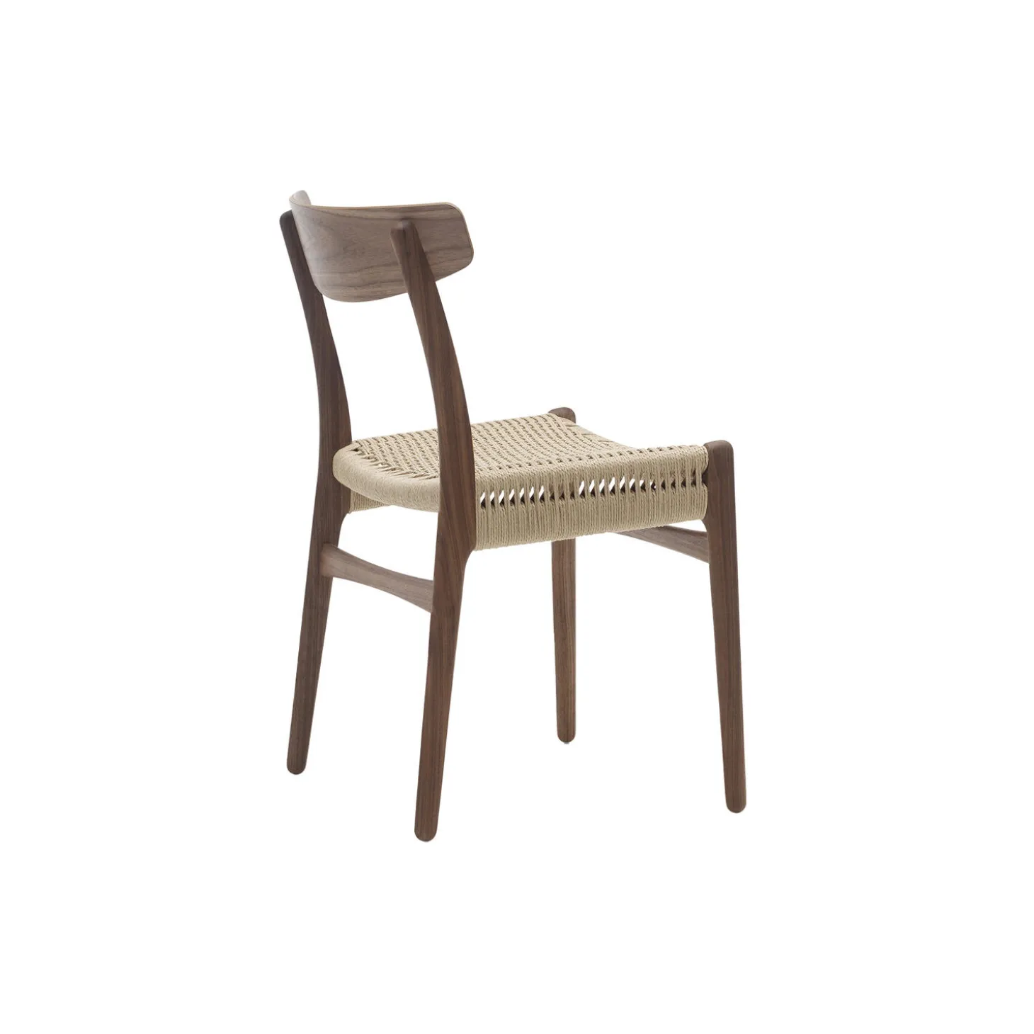 CH23 spisebordsstol i olieret valnød med sæde i papirgarn fra Carl Hansen & Søn. Farve: olieret valnød/natur. Mål: H: 78,6 x B: 50,3 x D: 50,3 cm. Siddehøjde: 45 cm. Design: Hans J. Wegner.
