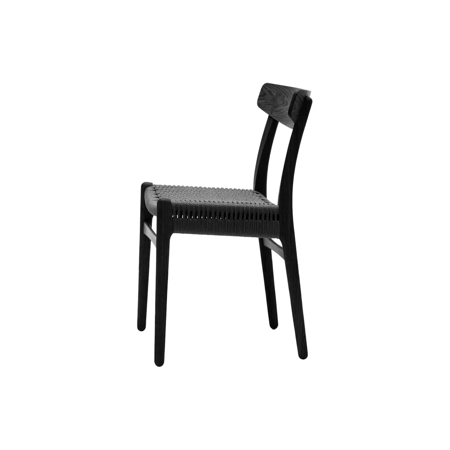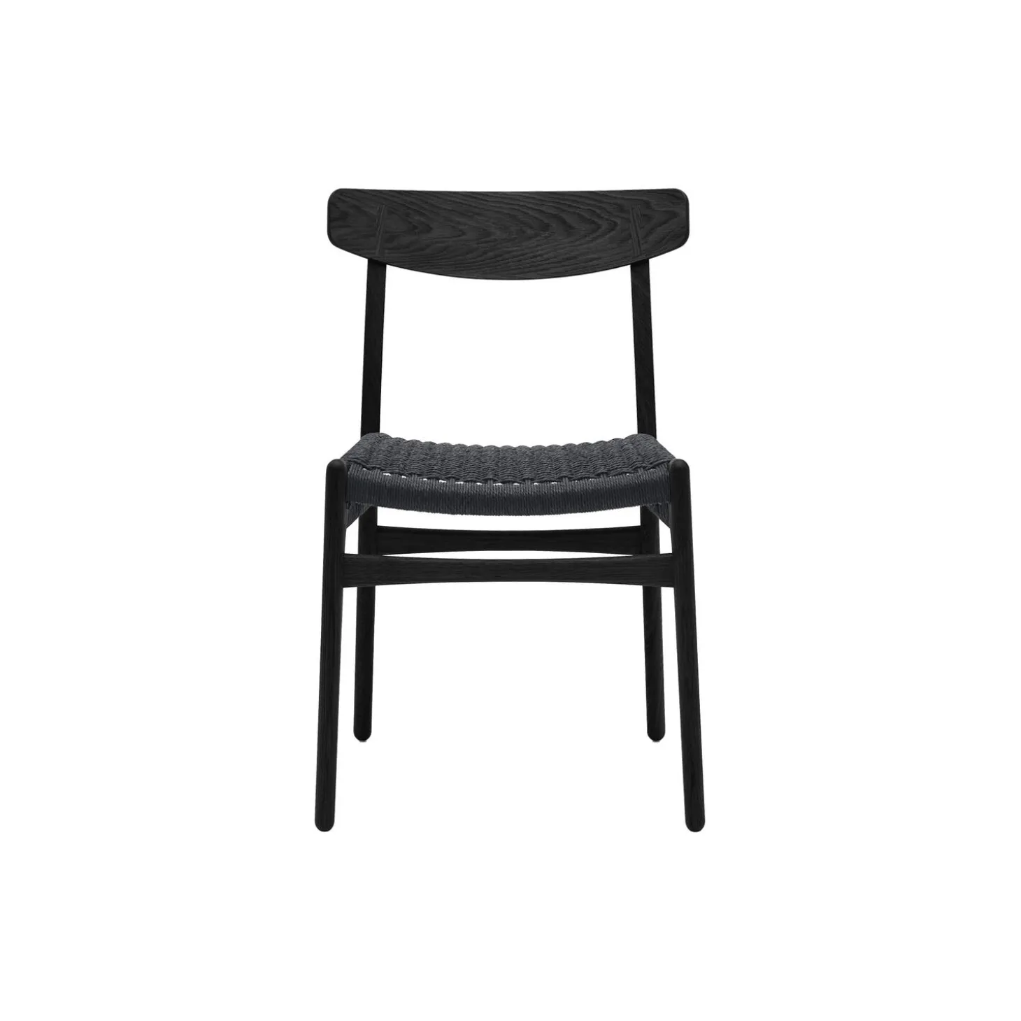 CH23 spisebordsstol i sortlakeret eg med sæde i papirgarn fra. Farve: sortlakeret eg/sort. Mål: H: 78,6 x B: 50,3 x D: 50,3 cm. Siddehøjde: 45 cm. Design: Hans J. Wegner.