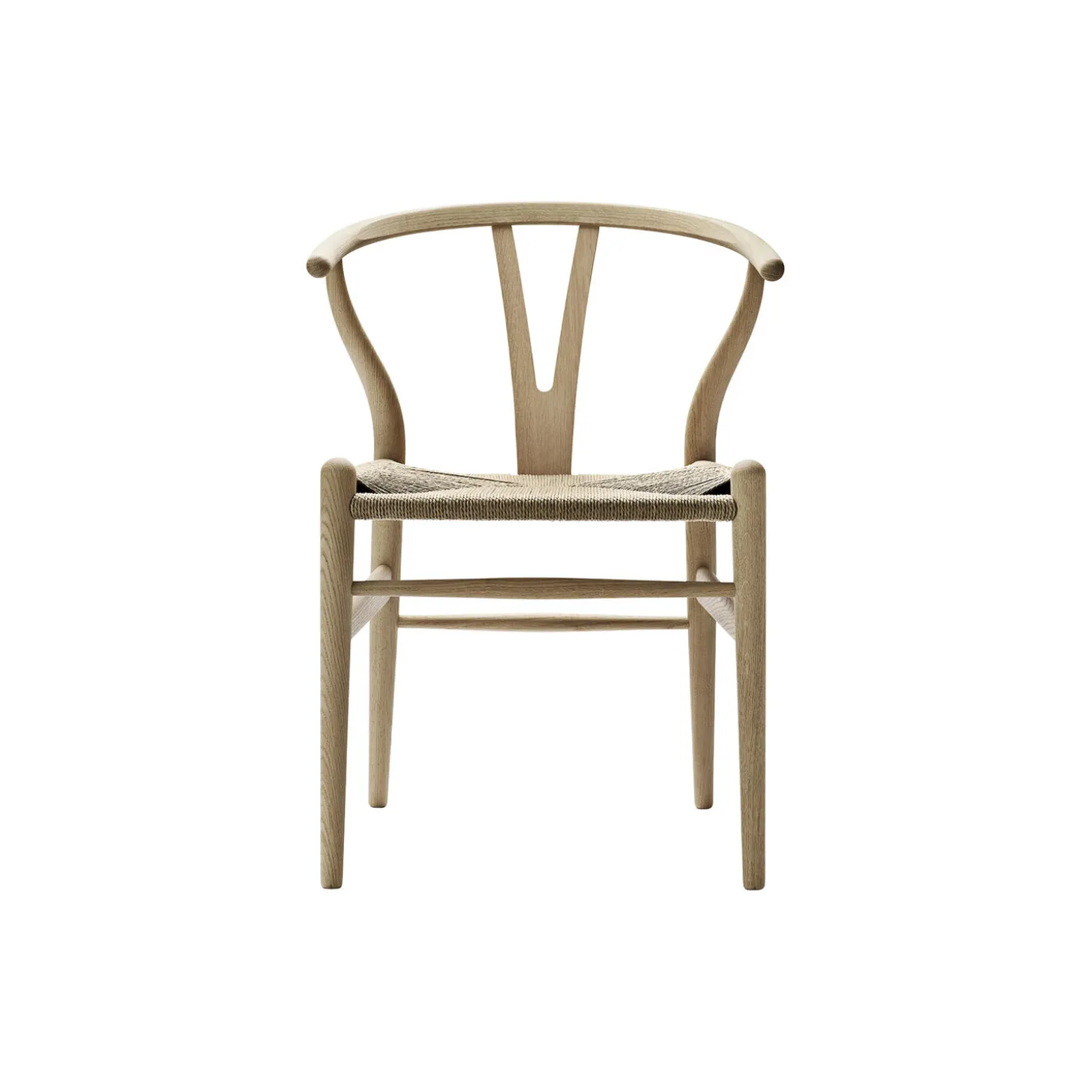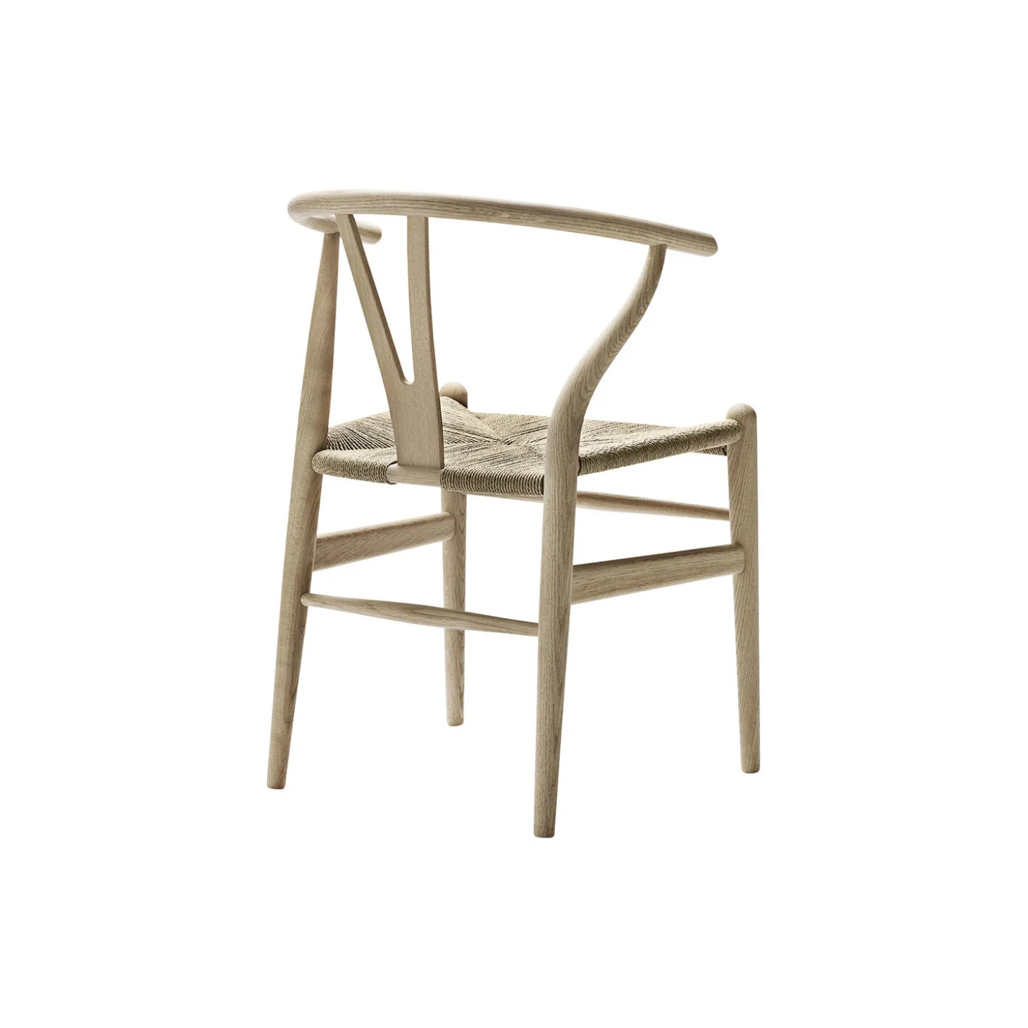 CH24 Y-stolen spisebordsstol i sæbebehandlet eg med sæde i papirgarn fra Carl Hansen & Søn. Farve: sæbebehandlet eg/natur. Mål: H: 76 x B: 55 x D: 51 cm. Siddehøjde: 45 cm. Design: Hans J. Wegner.