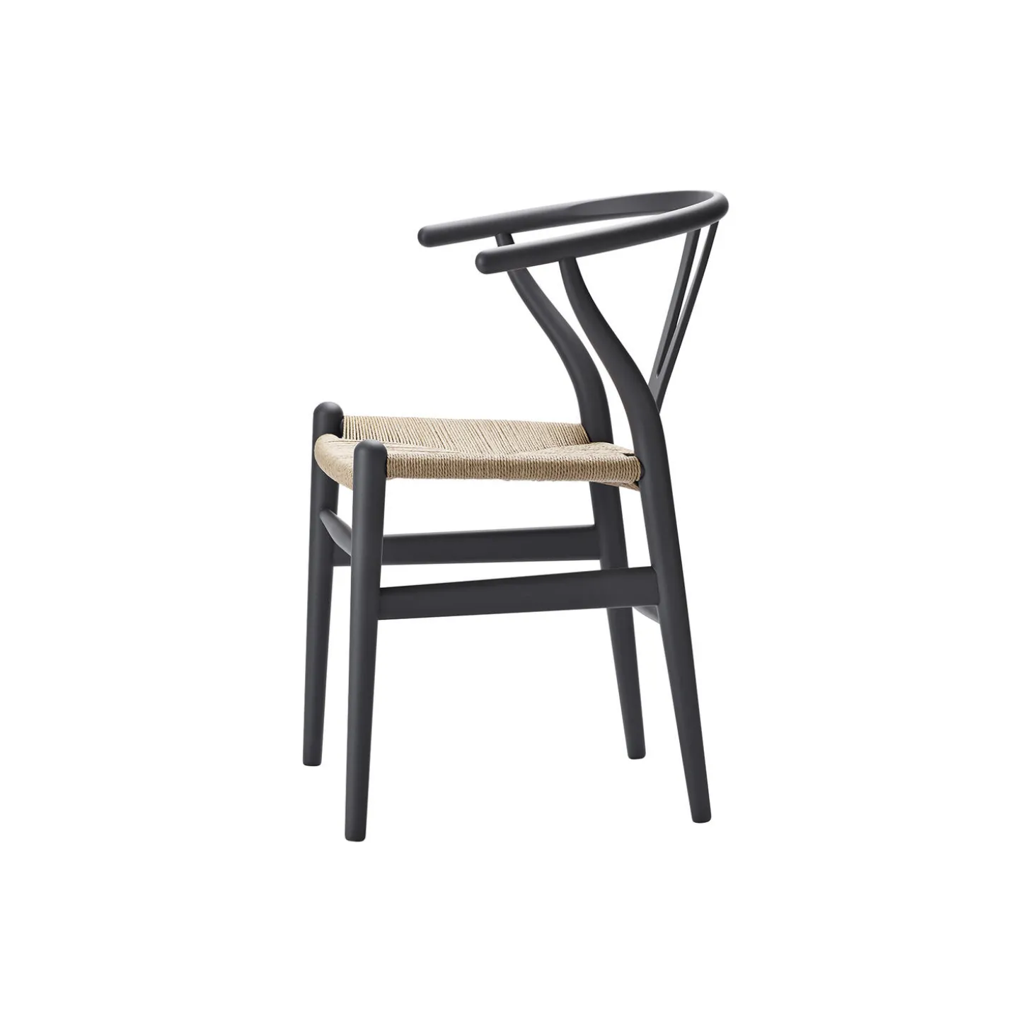 CH24 Y-stolen spisebordsstol i lakeret bøg med sæde i papirgarn fra Carl Hansen & Søn. Farve: soft gray. Mål: H: 76 x B: 55 x D: 51 cm. Siddehøjde: 45 cm. Design: Hans J. Wegner.