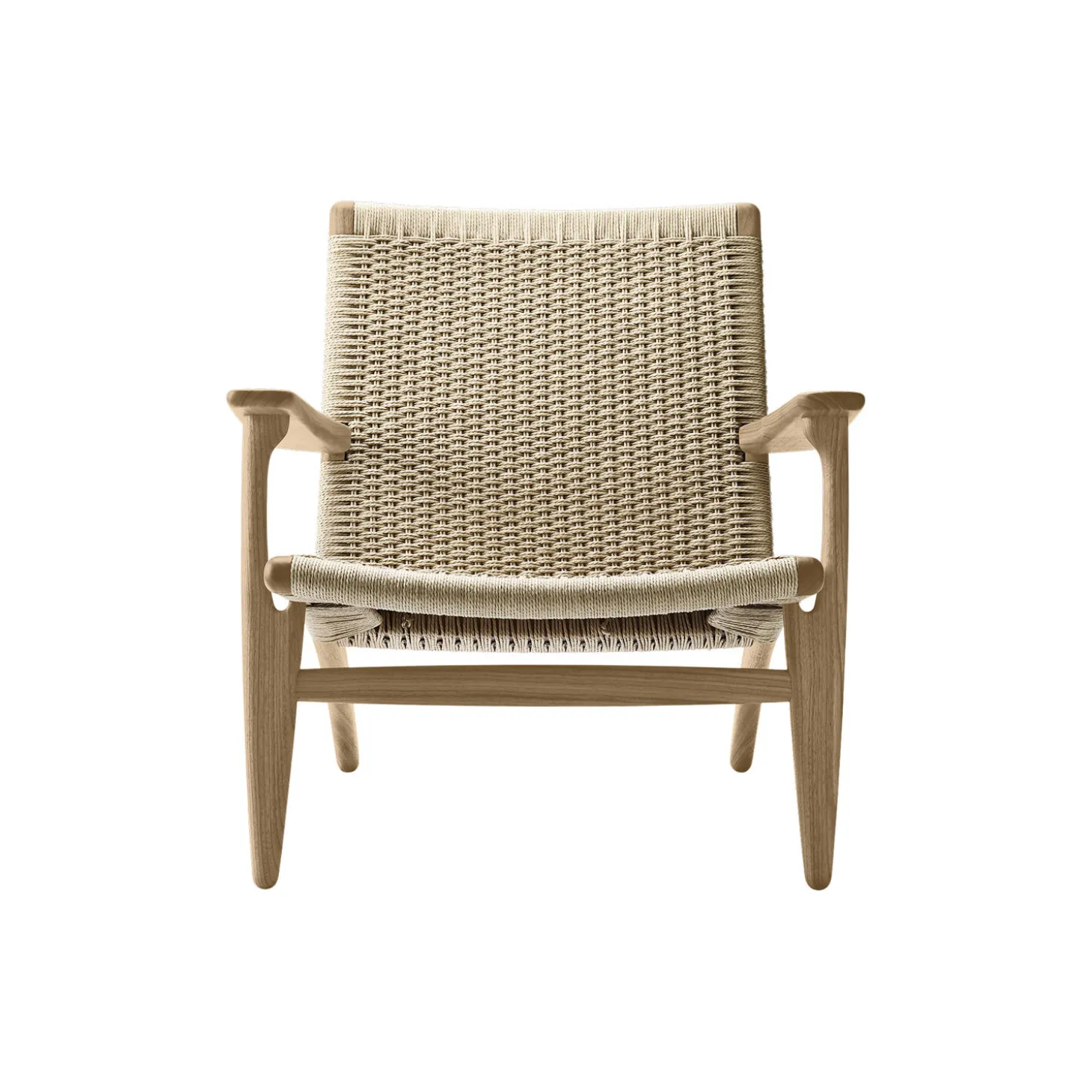 CH25 loungestol i olieret eg med sæde i papirgarn fra Carl Hansen & Søn. Farve: olieret eg/natur. Mål: H: 73 x B: 71 x D: 73 cm. Siddehøjde: 35 cm. Design: Hans J. Wegner.
